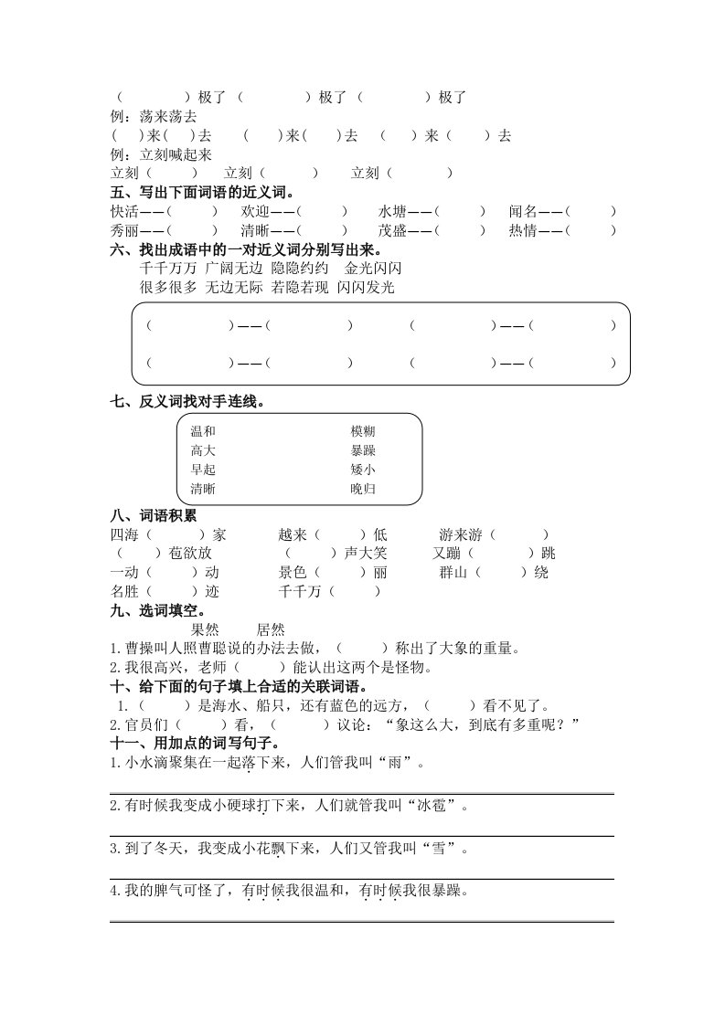 当前位置: 首页小学资源小学二年级正文 二年级语文上册2.词语专项练习题(部编)_共4页 小学二年级 2 周前 0 0 5 以上为部分内容预览,如需源文档请登录您的会员账号进行下载! 声明:本站所有文章,如无特殊说明或标注,均为本站原创发布。任何个人或组织,在未征得本站同意时,禁止复制、盗用、采集、发布本站内容到任何网站、书籍等各类媒体平台。如若本站内容侵犯了原著者的合法权益,可联系我们进行处理。 尚学资源永久会员 打赏 收藏 海报 链接