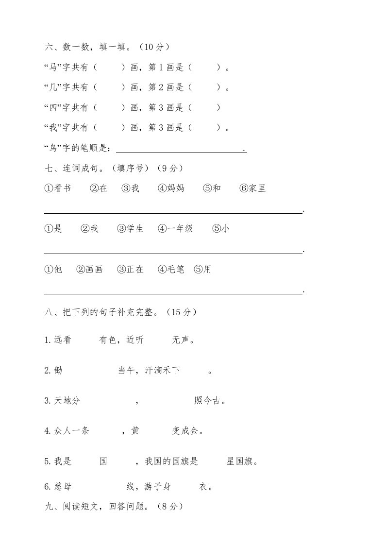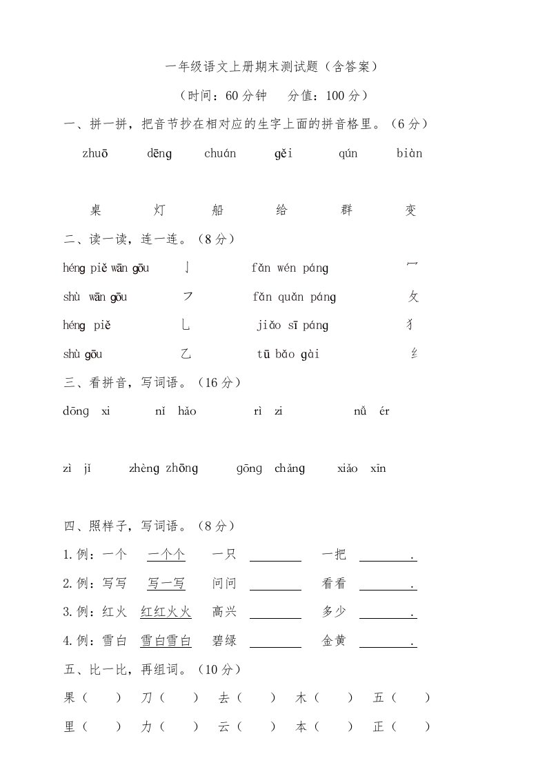 一年级语文上册(期末试题)-部编(13)(部编版)_共6页