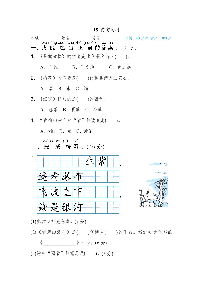 当前位置: 首页小学资源小学二年级正文 二年级语文上册15诗句运用(部编)_共4页 小学二年级 2 周前 0 0 5 以上为部分内容预览,如需源文档请登录您的会员账号进行下载! 声明:本站所有文章,如无特殊说明或标注,均为本站原创发布。任何个人或组织,在未征得本站同意时,禁止复制、盗用、采集、发布本站内容到任何网站、书籍等各类媒体平台。如若本站内容侵犯了原著者的合法权益,可联系我们进行处理。 尚学资源永久会员 打赏 收藏 海报 链接