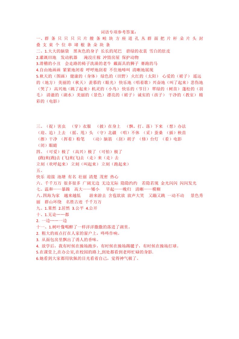 二年级语文上册词语专项答案(部编)_共1页