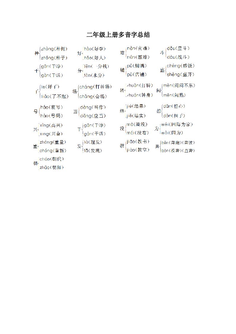 当前位置: 首页小学资源小学二年级正文 二年级语文上册多音字汇总(部编)_共1页 小学二年级 2 周前 0 0 5 以上为部分内容预览,如需源文档请登录您的会员账号进行下载! 声明:本站所有文章,如无特殊说明或标注,均为本站原创发布。任何个人或组织,在未征得本站同意时,禁止复制、盗用、采集、发布本站内容到任何网站、书籍等各类媒体平台。如若本站内容侵犯了原著者的合法权益,可联系我们进行处理。 尚学资源永久会员 打赏 收藏 海报 链接