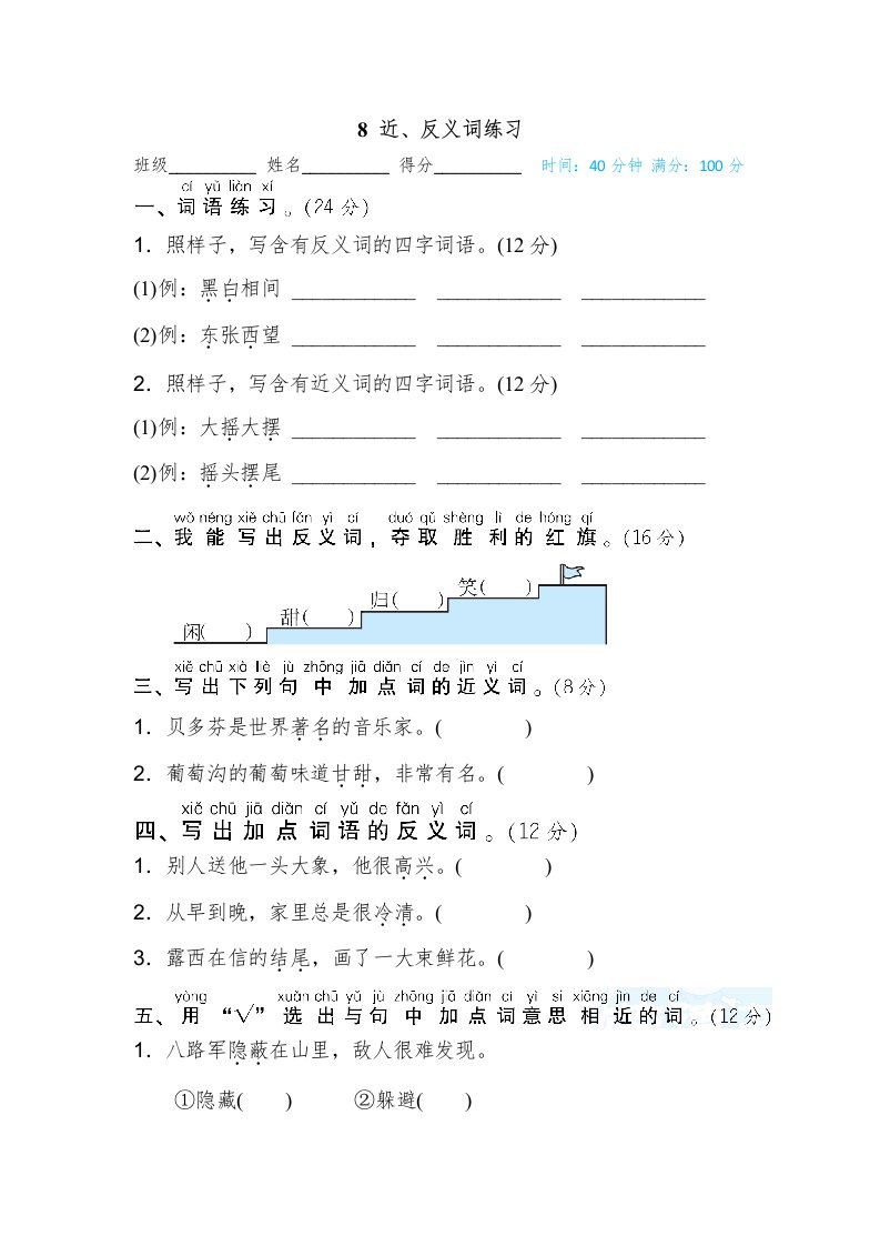 当前位置: 首页小学资源小学二年级正文 二年级语文上册近、反义词练习(部编)_共4页 小学二年级 2 周前 0 0 5 以上为部分内容预览,如需源文档请登录您的会员账号进行下载! 声明:本站所有文章,如无特殊说明或标注,均为本站原创发布。任何个人或组织,在未征得本站同意时,禁止复制、盗用、采集、发布本站内容到任何网站、书籍等各类媒体平台。如若本站内容侵犯了原著者的合法权益,可联系我们进行处理。 尚学资源永久会员 打赏 收藏 海报 链接