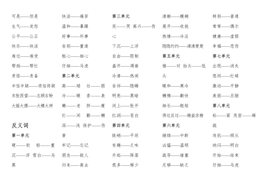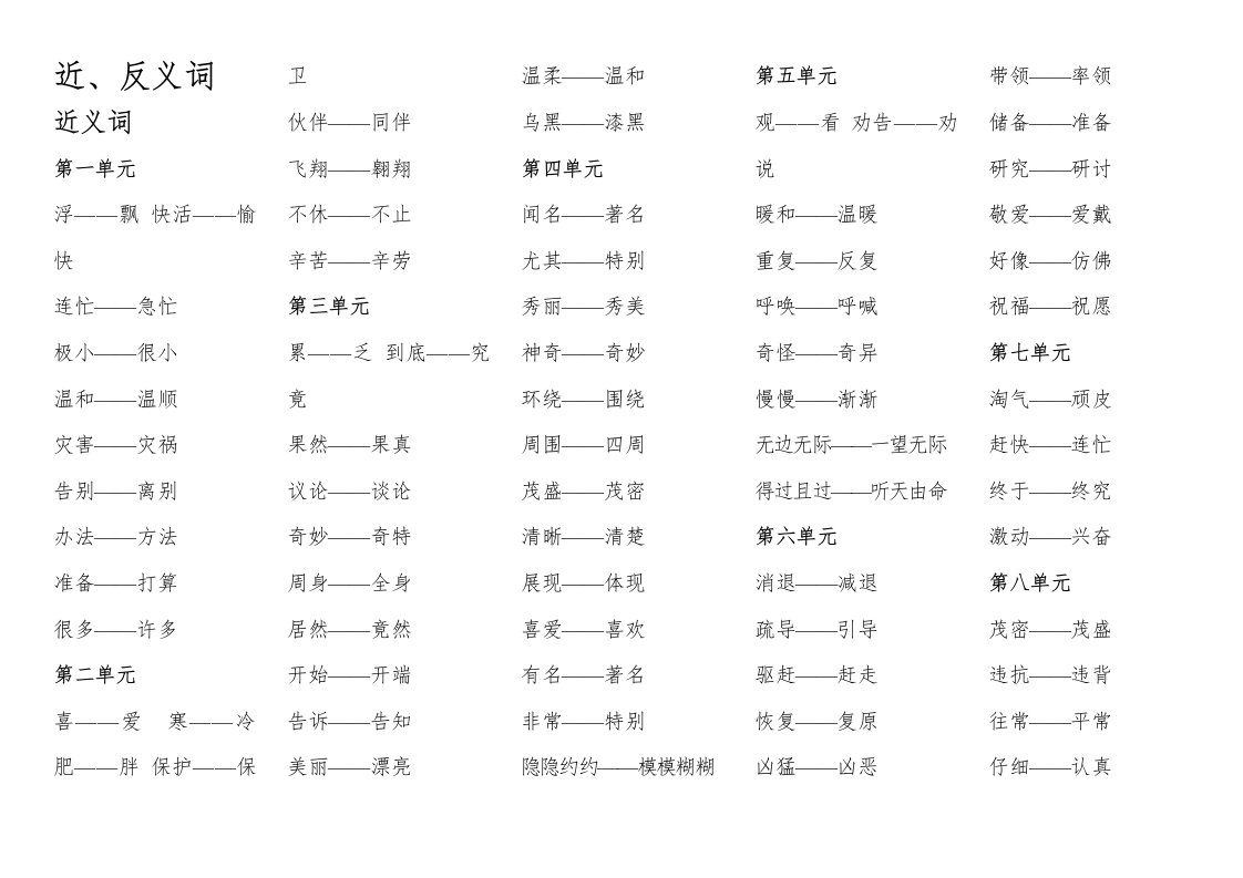 当前位置: 首页小学资源小学二年级正文 二年级语文上册近反义词汇总(部编)_共3页 小学二年级 2 周前 0 0 5 以上为部分内容预览,如需源文档请登录您的会员账号进行下载! 声明:本站所有文章,如无特殊说明或标注,均为本站原创发布。任何个人或组织,在未征得本站同意时,禁止复制、盗用、采集、发布本站内容到任何网站、书籍等各类媒体平台。如若本站内容侵犯了原著者的合法权益,可联系我们进行处理。 尚学资源永久会员 打赏 收藏 海报 链接