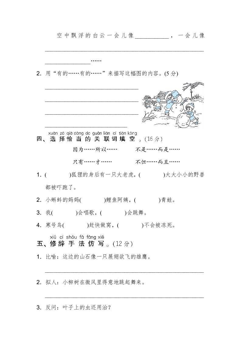 当前位置: 首页小学资源小学二年级正文 二年级语文上册句式训练(部编)_共4页 小学二年级 2 周前 0 0 5 以上为部分内容预览,如需源文档请登录您的会员账号进行下载! 声明:本站所有文章,如无特殊说明或标注,均为本站原创发布。任何个人或组织,在未征得本站同意时,禁止复制、盗用、采集、发布本站内容到任何网站、书籍等各类媒体平台。如若本站内容侵犯了原著者的合法权益,可联系我们进行处理。 尚学资源永久会员 打赏 收藏 海报 链接