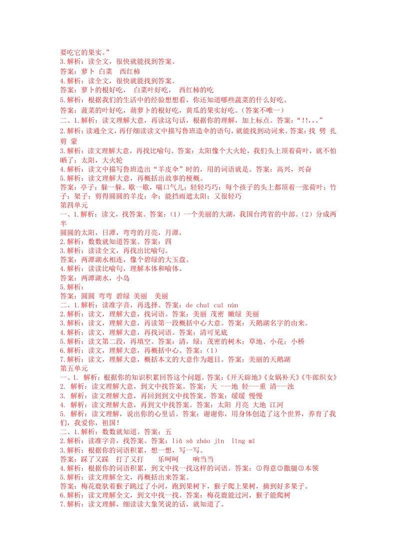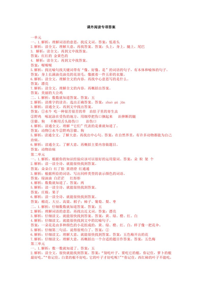 二年级语文上册课外阅读专项答案(部编)2_共4页