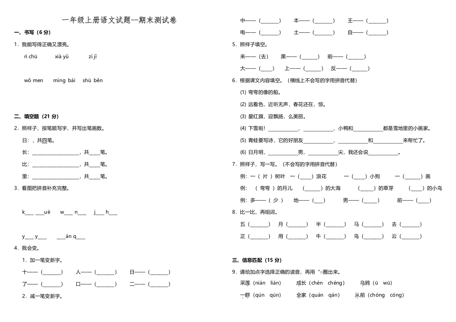 当前位置: 首页小学资源小学一年级正文 一年级语文上册(期末试题)-部编(4)(部编版)_共4页 小学一年级 2 周前 0 0 5 以上为部分内容预览,如需源文档请登录您的会员账号进行下载! 声明:本站所有文章,如无特殊说明或标注,均为本站原创发布。任何个人或组织,在未征得本站同意时,禁止复制、盗用、采集、发布本站内容到任何网站、书籍等各类媒体平台。如若本站内容侵犯了原著者的合法权益,可联系我们进行处理。 尚学资源永久会员 打赏 收藏 海报 链接