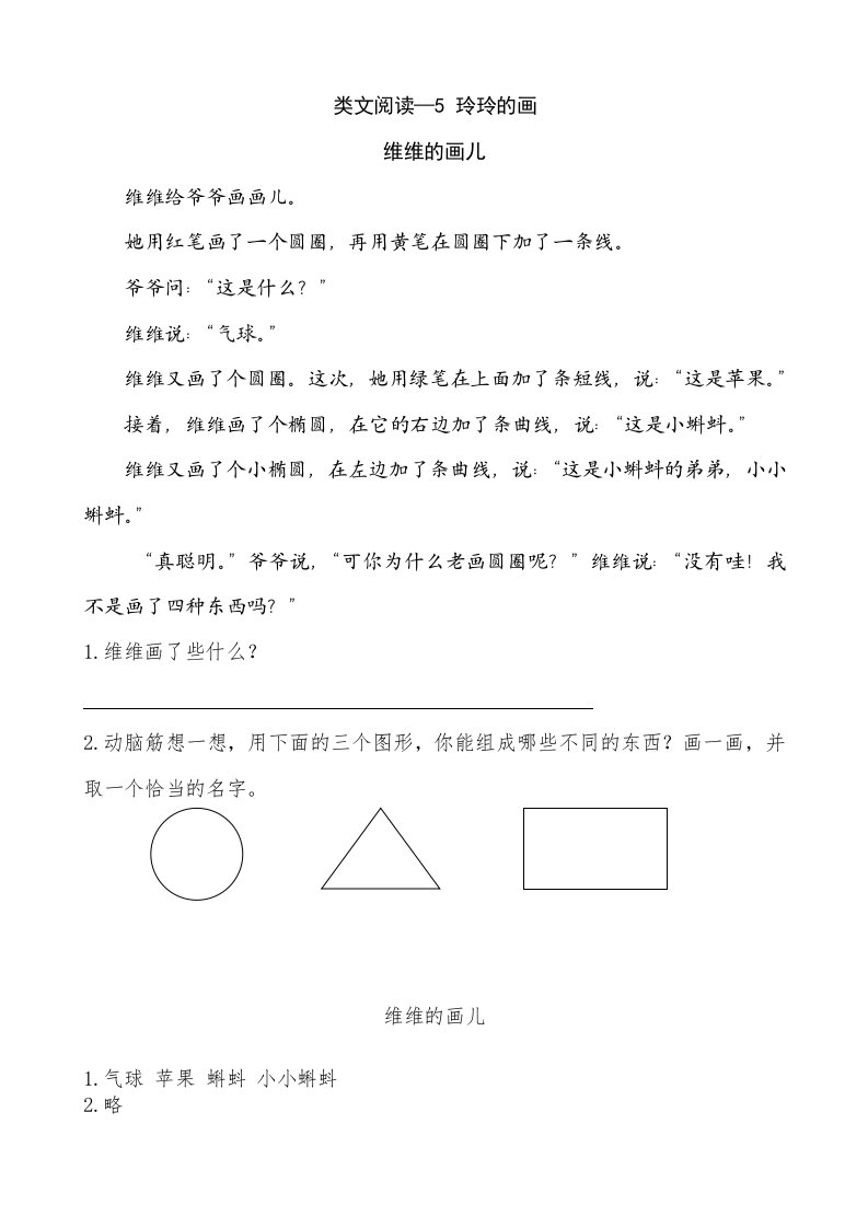 二年级语文上册类文阅读—5玲玲的画(部编)_共3页