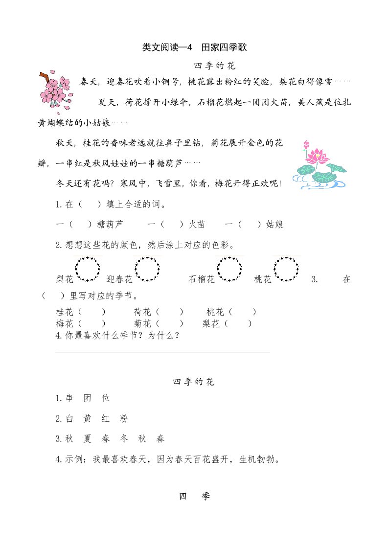 当前位置: 首页小学资源小学二年级正文 二年级语文上册类文阅读—4田家四季歌(部编)_共3页 小学二年级 2 周前 0 0 5 以上为部分内容预览,如需源文档请登录您的会员账号进行下载! 声明:本站所有文章,如无特殊说明或标注,均为本站原创发布。任何个人或组织,在未征得本站同意时,禁止复制、盗用、采集、发布本站内容到任何网站、书籍等各类媒体平台。如若本站内容侵犯了原著者的合法权益,可联系我们进行处理。 尚学资源永久会员 打赏 收藏 海报 链接