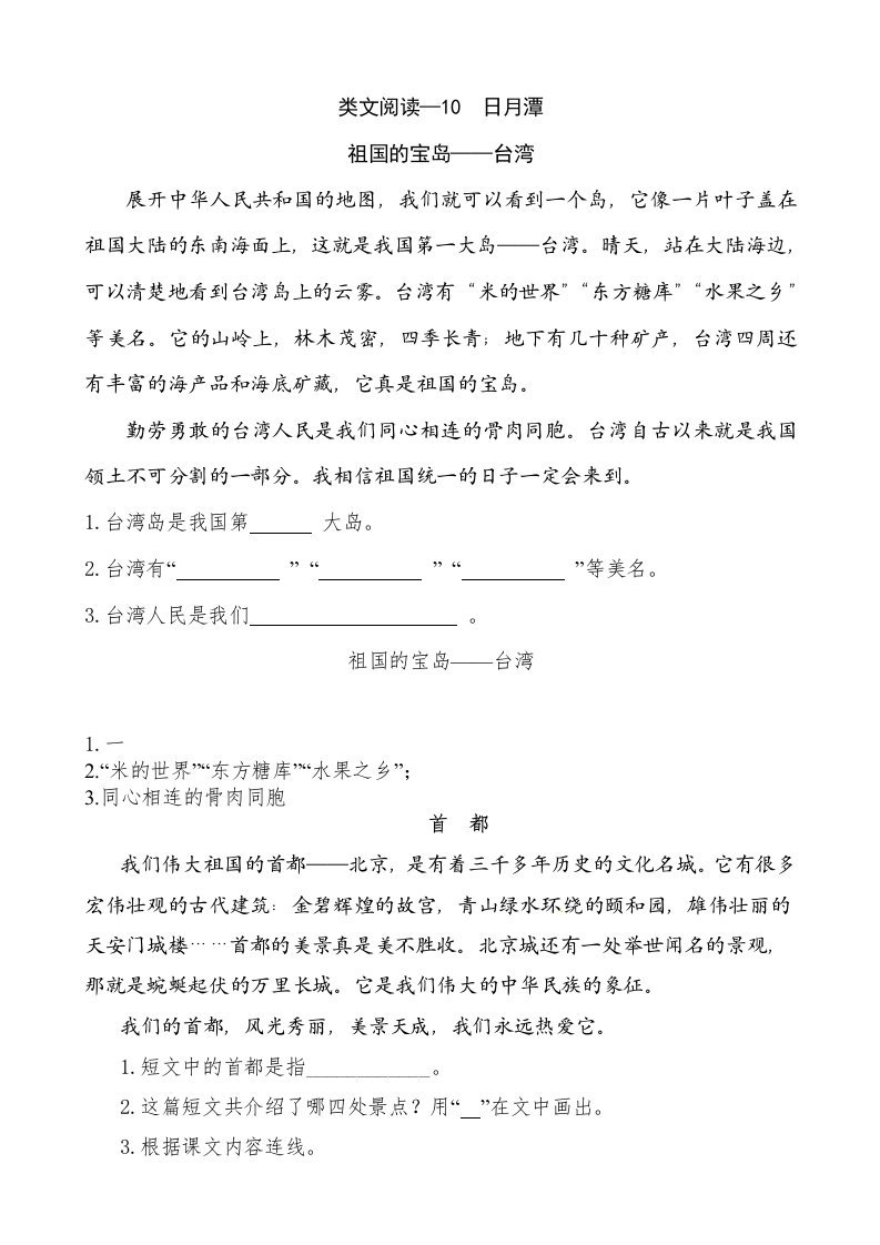 当前位置: 首页小学资源小学二年级正文 二年级语文上册类文阅读—10日月潭(部编)_共3页 小学二年级 2 周前 0 0 5 以上为部分内容预览,如需源文档请登录您的会员账号进行下载! 声明:本站所有文章,如无特殊说明或标注,均为本站原创发布。任何个人或组织,在未征得本站同意时,禁止复制、盗用、采集、发布本站内容到任何网站、书籍等各类媒体平台。如若本站内容侵犯了原著者的合法权益,可联系我们进行处理。 尚学资源永久会员 打赏 收藏 海报 链接
