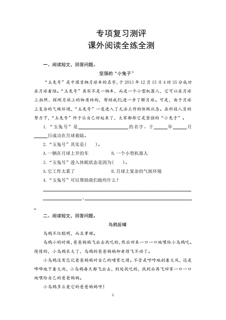 当前位置: 首页小学资源小学二年级正文 二年级语文上册期末复习课外阅读专项测评卷(供打印5页)(部编)_共5页 小学二年级 2 周前 0 0 5 以上为部分内容预览,如需源文档请登录您的会员账号进行下载! 声明:本站所有文章,如无特殊说明或标注,均为本站原创发布。任何个人或组织,在未征得本站同意时,禁止复制、盗用、采集、发布本站内容到任何网站、书籍等各类媒体平台。如若本站内容侵犯了原著者的合法权益,可联系我们进行处理。 尚学资源永久会员 打赏 收藏 海报 链接