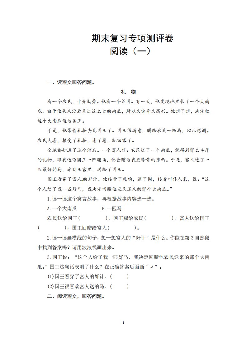 当前位置: 首页小学资源小学二年级正文 二年级语文上册期末复习阅读口语交际与写话专项测评卷(供打印8页)(部编)_共8页 小学二年级 2 周前 0 0 5 以上为部分内容预览,如需源文档请登录您的会员账号进行下载! 声明:本站所有文章,如无特殊说明或标注,均为本站原创发布。任何个人或组织,在未征得本站同意时,禁止复制、盗用、采集、发布本站内容到任何网站、书籍等各类媒体平台。如若本站内容侵犯了原著者的合法权益,可联系我们进行处理。 尚学资源永久会员 打赏 收藏 海报 链接