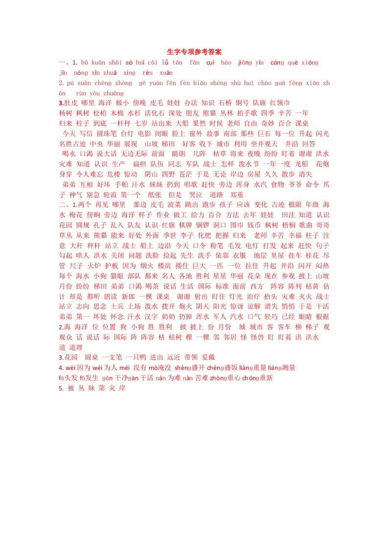 当前位置: 首页小学资源小学二年级正文 二年级语文上册生字专项答案(部编)2_共1页 小学二年级 2 周前 0 0 5 以上为部分内容预览,如需源文档请登录您的会员账号进行下载! 声明:本站所有文章,如无特殊说明或标注,均为本站原创发布。任何个人或组织,在未征得本站同意时,禁止复制、盗用、采集、发布本站内容到任何网站、书籍等各类媒体平台。如若本站内容侵犯了原著者的合法权益,可联系我们进行处理。 尚学资源永久会员 打赏 收藏 海报 链接