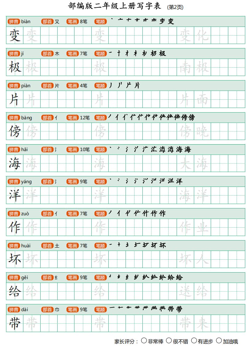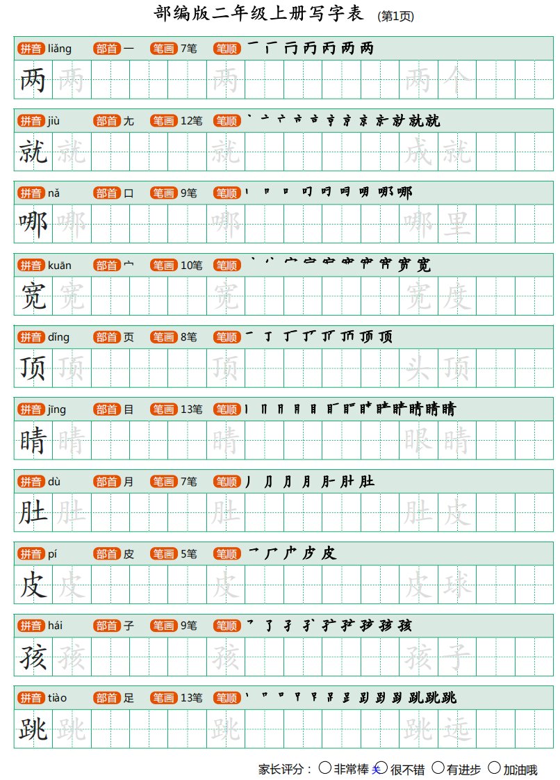 二年级语文上册写字表(25页)PDF(部编)_共25页