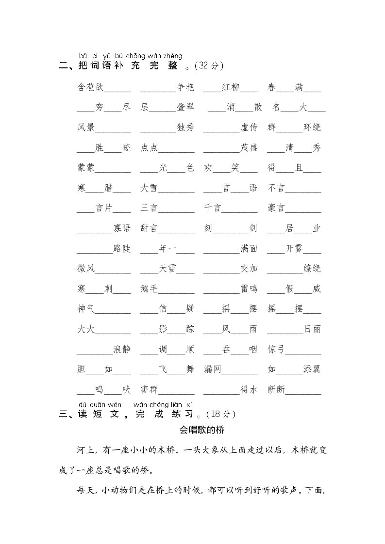 当前位置: 首页小学资源小学二年级正文 二年级语文上册新词积累(部编)_共5页 小学二年级 2 周前 0 0 5 以上为部分内容预览,如需源文档请登录您的会员账号进行下载! 声明:本站所有文章,如无特殊说明或标注,均为本站原创发布。任何个人或组织,在未征得本站同意时,禁止复制、盗用、采集、发布本站内容到任何网站、书籍等各类媒体平台。如若本站内容侵犯了原著者的合法权益,可联系我们进行处理。 尚学资源永久会员 打赏 收藏 海报 链接