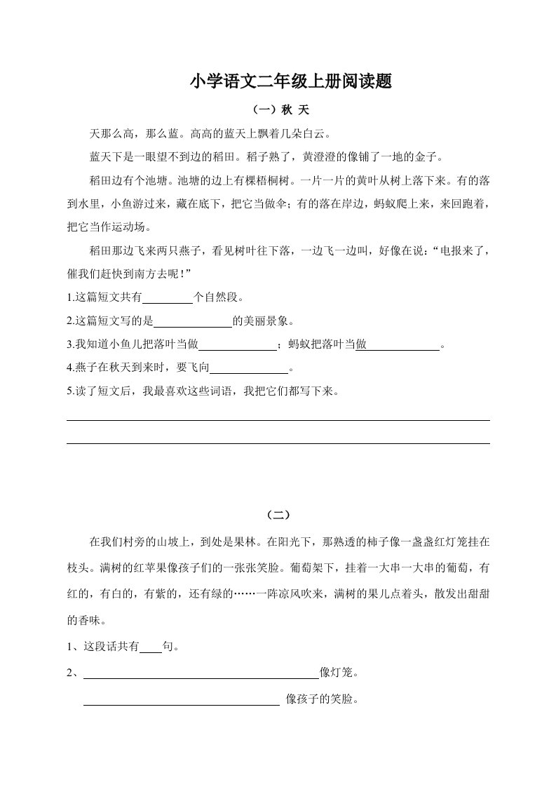 当前位置: 首页小学资源小学二年级正文 二年级语文上册阅读题及参考答案(18篇)(部编)_共15页 小学二年级 2 周前 0 0 10 以上为部分内容预览,如需源文档请登录您的会员账号进行下载! 声明:本站所有文章,如无特殊说明或标注,均为本站原创发布。任何个人或组织,在未征得本站同意时,禁止复制、盗用、采集、发布本站内容到任何网站、书籍等各类媒体平台。如若本站内容侵犯了原著者的合法权益,可联系我们进行处理。 尚学资源永久会员 打赏 收藏 海报 链接