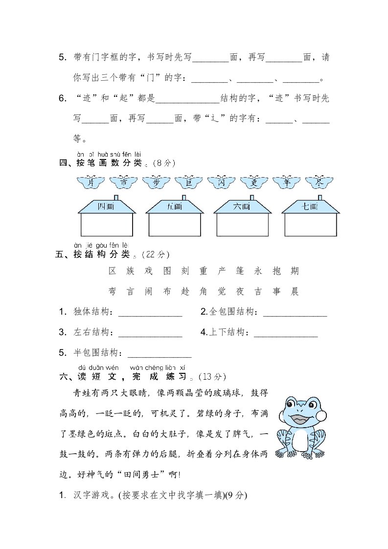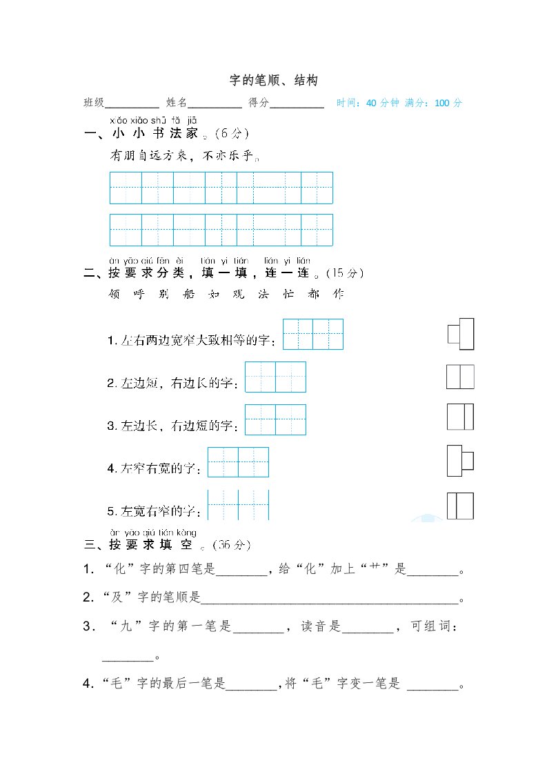 二年级语文上册字的笔顺、结构(部编)_共4页