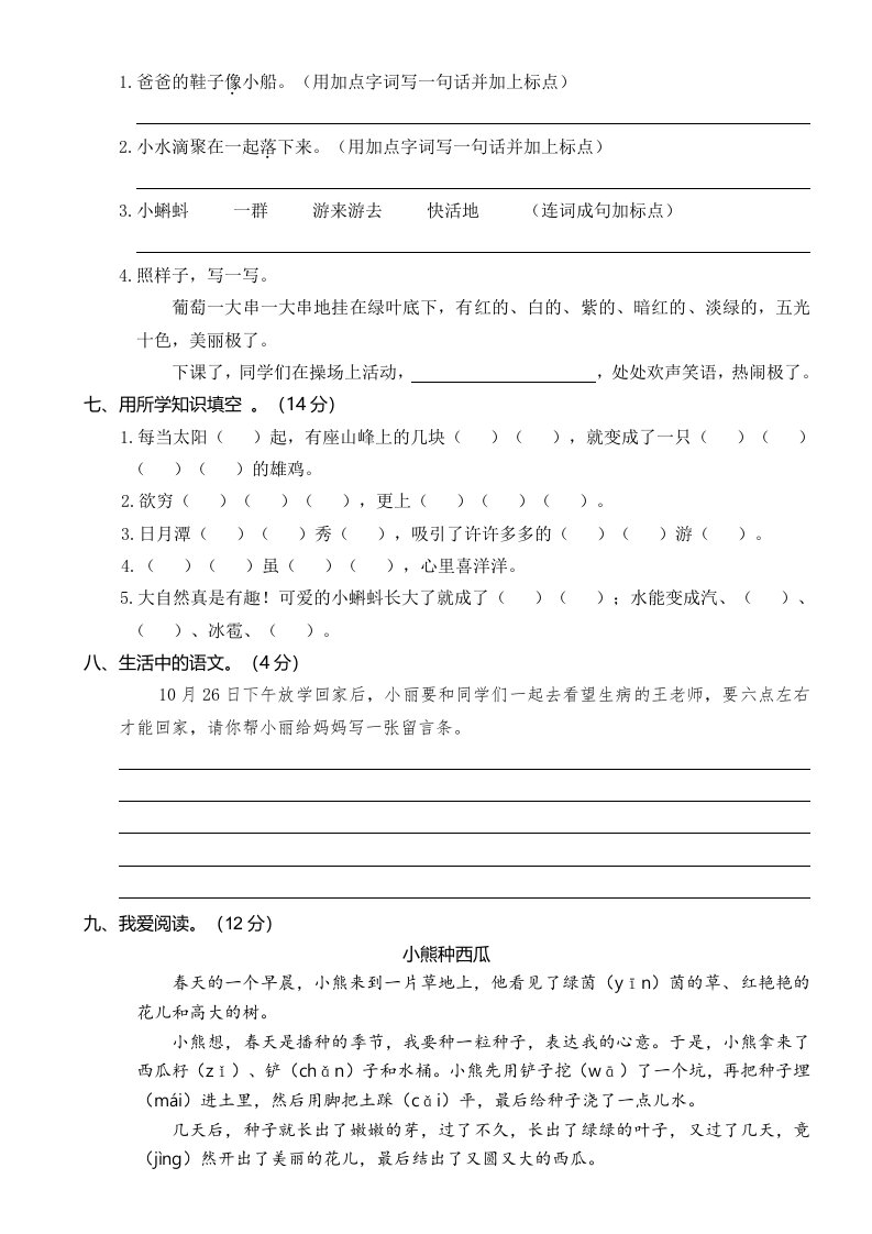 当前位置: 首页小学资源小学二年级正文 二年级语文上册2019—2020学年统编版二语上期中真题卷(三)(部编)_共3页 小学二年级 2 周前 0 0 5 以上为部分内容预览,如需源文档请登录您的会员账号进行下载! 声明:本站所有文章,如无特殊说明或标注,均为本站原创发布。任何个人或组织,在未征得本站同意时,禁止复制、盗用、采集、发布本站内容到任何网站、书籍等各类媒体平台。如若本站内容侵犯了原著者的合法权益,可联系我们进行处理。 尚学资源永久会员 打赏 收藏 海报 链接