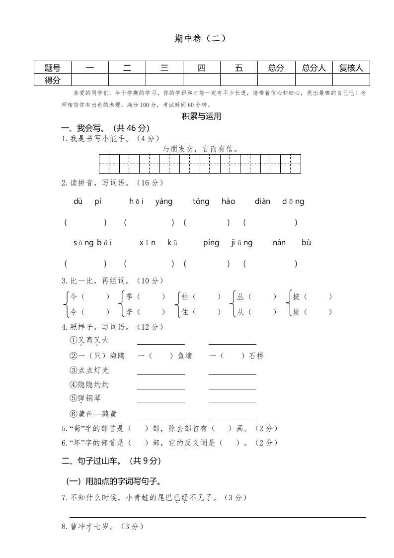 当前位置: 首页小学资源小学二年级正文 二年级语文上册期中测试(4)(部编)_共5页 小学二年级 2 周前 0 0 5 以上为部分内容预览,如需源文档请登录您的会员账号进行下载! 声明:本站所有文章,如无特殊说明或标注,均为本站原创发布。任何个人或组织,在未征得本站同意时,禁止复制、盗用、采集、发布本站内容到任何网站、书籍等各类媒体平台。如若本站内容侵犯了原著者的合法权益,可联系我们进行处理。 尚学资源永久会员 打赏 收藏 海报 链接