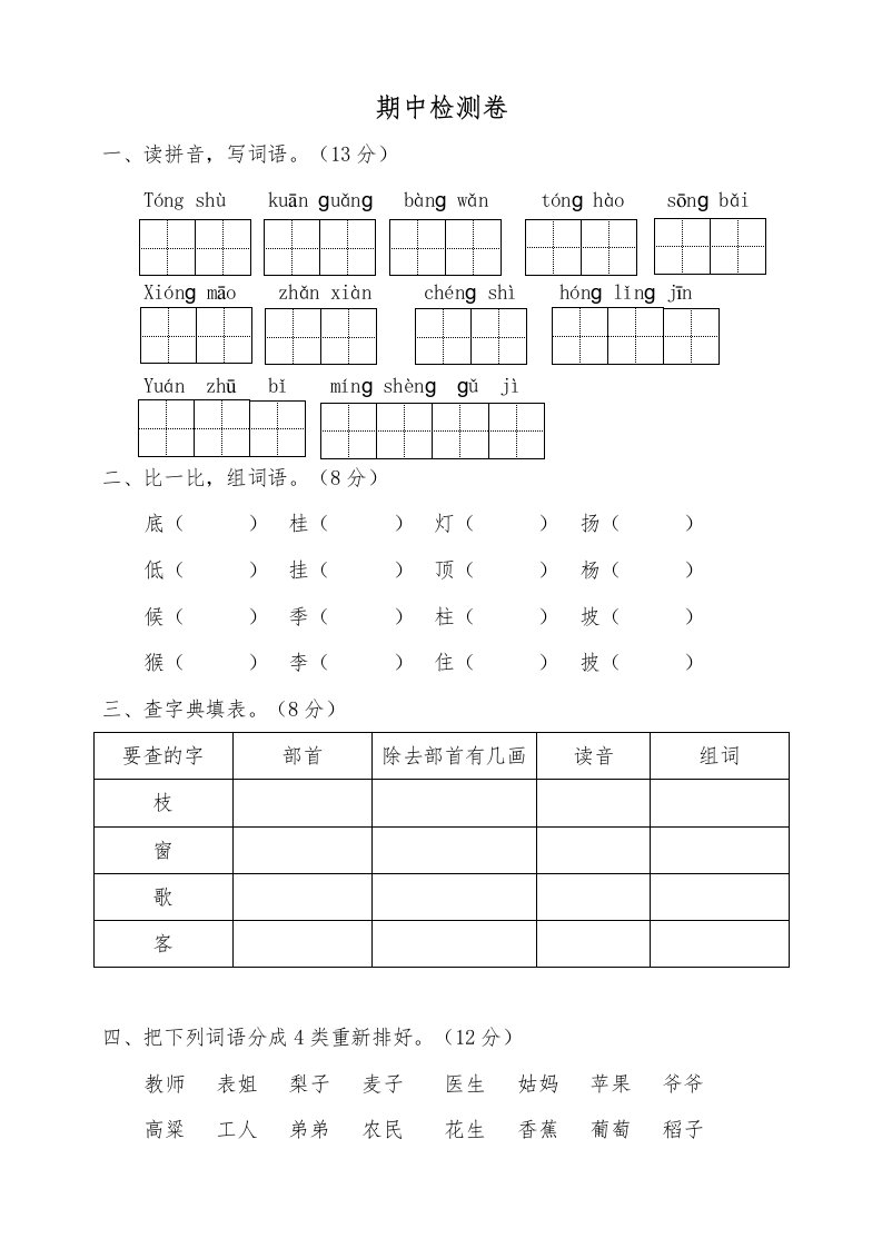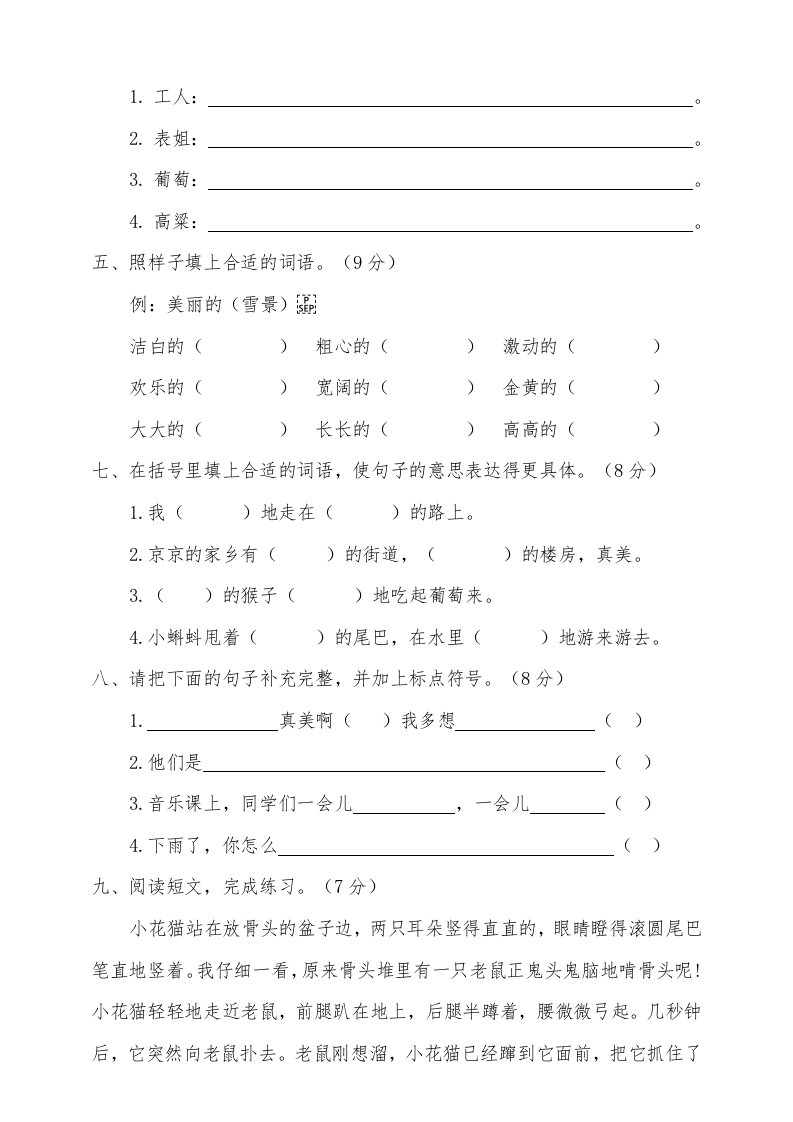 二年级语文上册期中测试(9)(部编)_共4页