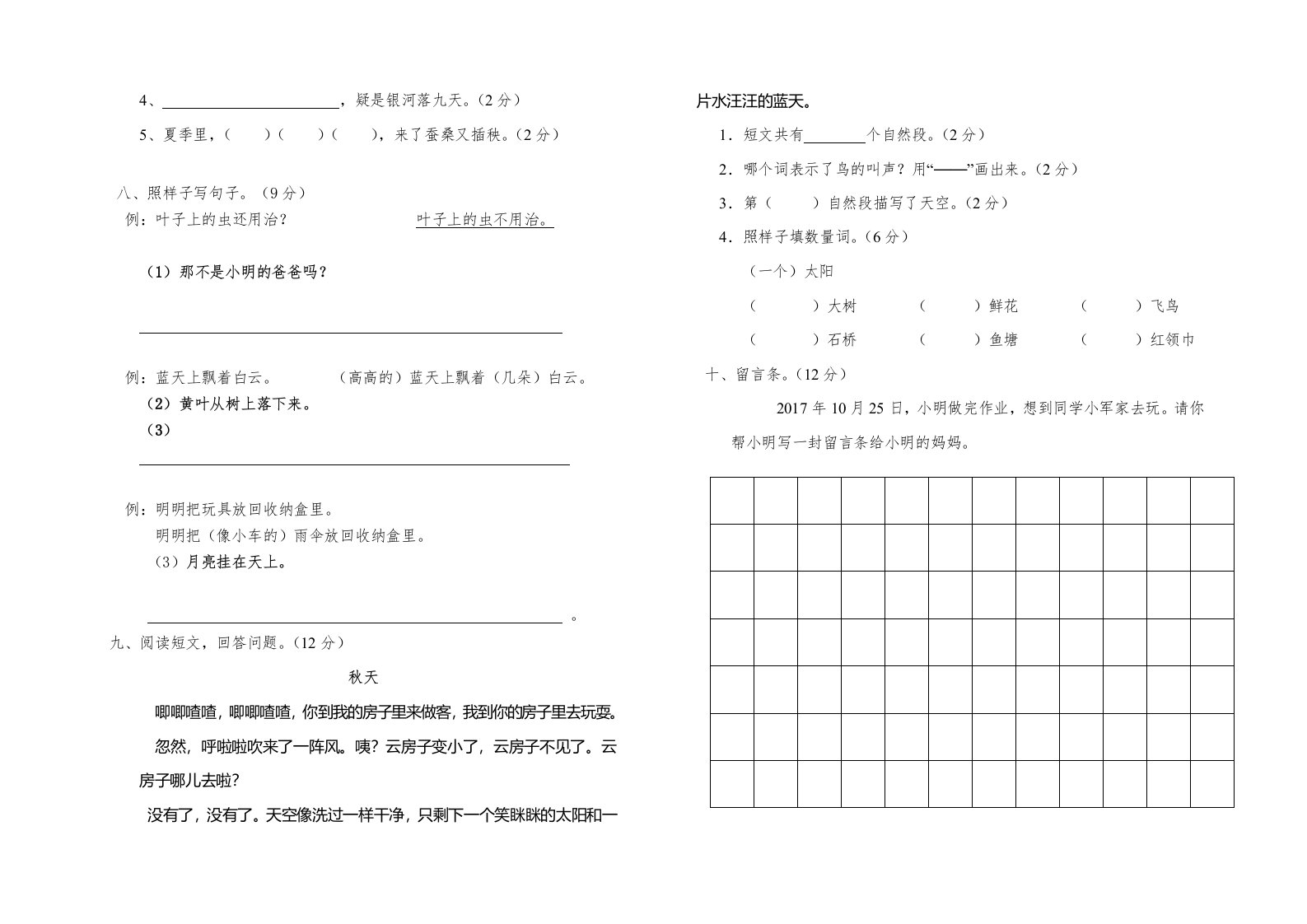 当前位置: 首页小学资源小学二年级正文 二年级语文上册期中练习(3)(部编)_共3页 小学二年级 2 周前 0 0 5 以上为部分内容预览,如需源文档请登录您的会员账号进行下载! 声明:本站所有文章,如无特殊说明或标注,均为本站原创发布。任何个人或组织,在未征得本站同意时,禁止复制、盗用、采集、发布本站内容到任何网站、书籍等各类媒体平台。如若本站内容侵犯了原著者的合法权益,可联系我们进行处理。 尚学资源永久会员 打赏 收藏 海报 链接