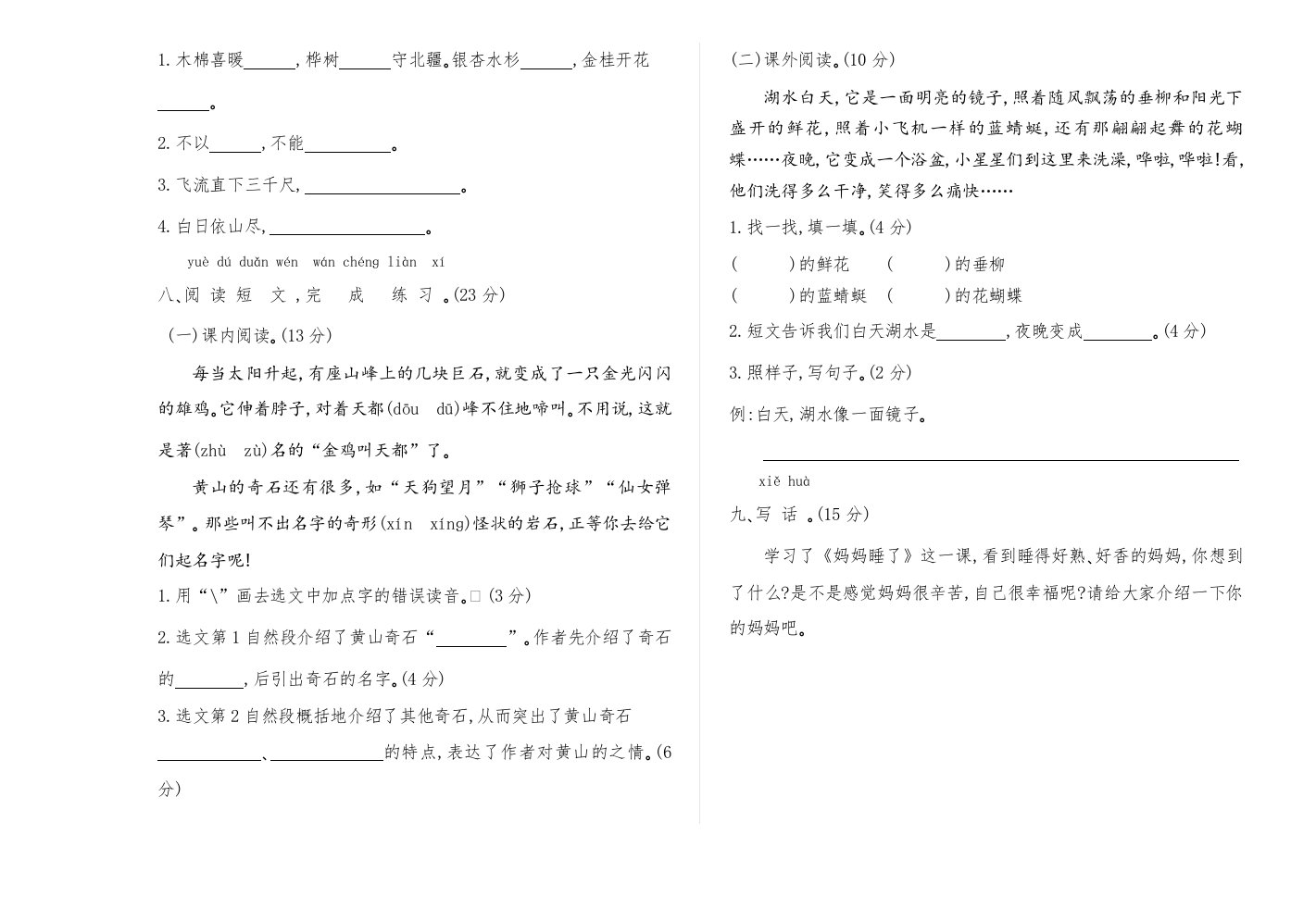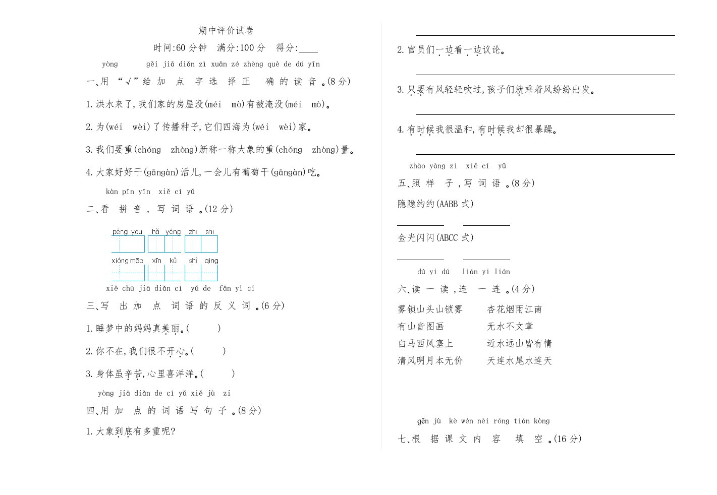 当前位置: 首页小学资源小学二年级正文 二年级语文上册期中检测卷(部编)_共3页 小学二年级 2 周前 0 0 5 以上为部分内容预览,如需源文档请登录您的会员账号进行下载! 声明:本站所有文章,如无特殊说明或标注,均为本站原创发布。任何个人或组织,在未征得本站同意时,禁止复制、盗用、采集、发布本站内容到任何网站、书籍等各类媒体平台。如若本站内容侵犯了原著者的合法权益,可联系我们进行处理。 尚学资源永久会员 打赏 收藏 海报 链接