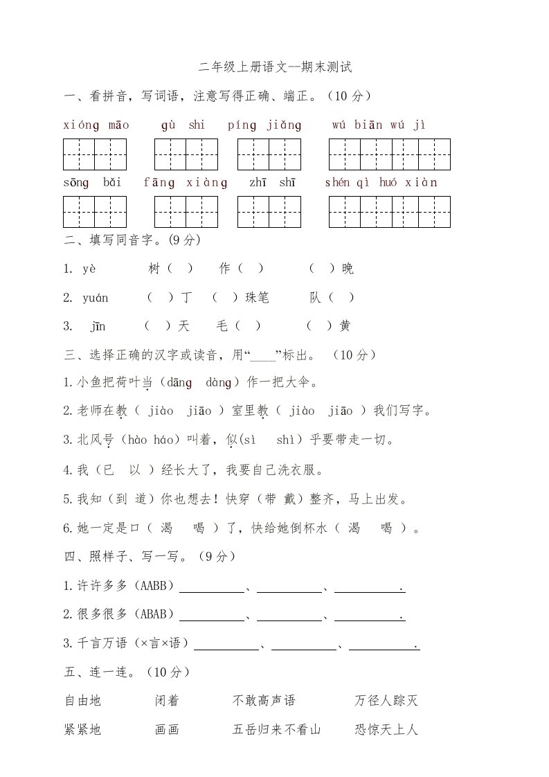 二年级语文上册(期末试题)(8)(部编)_共8页