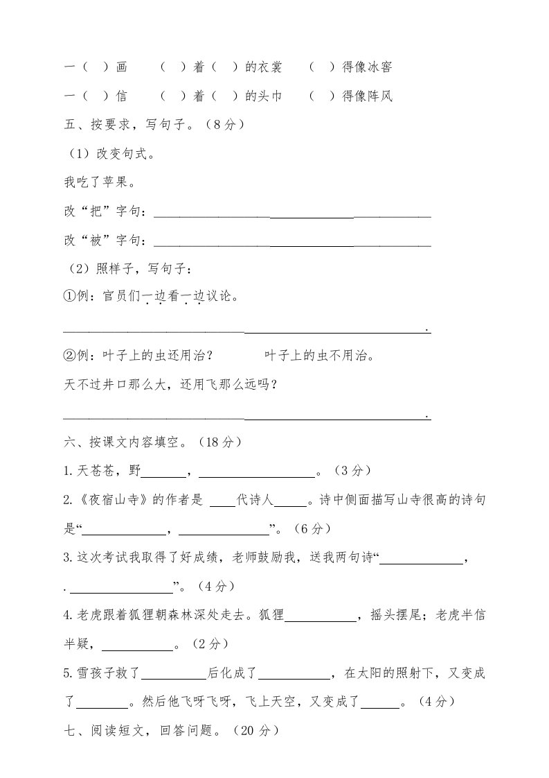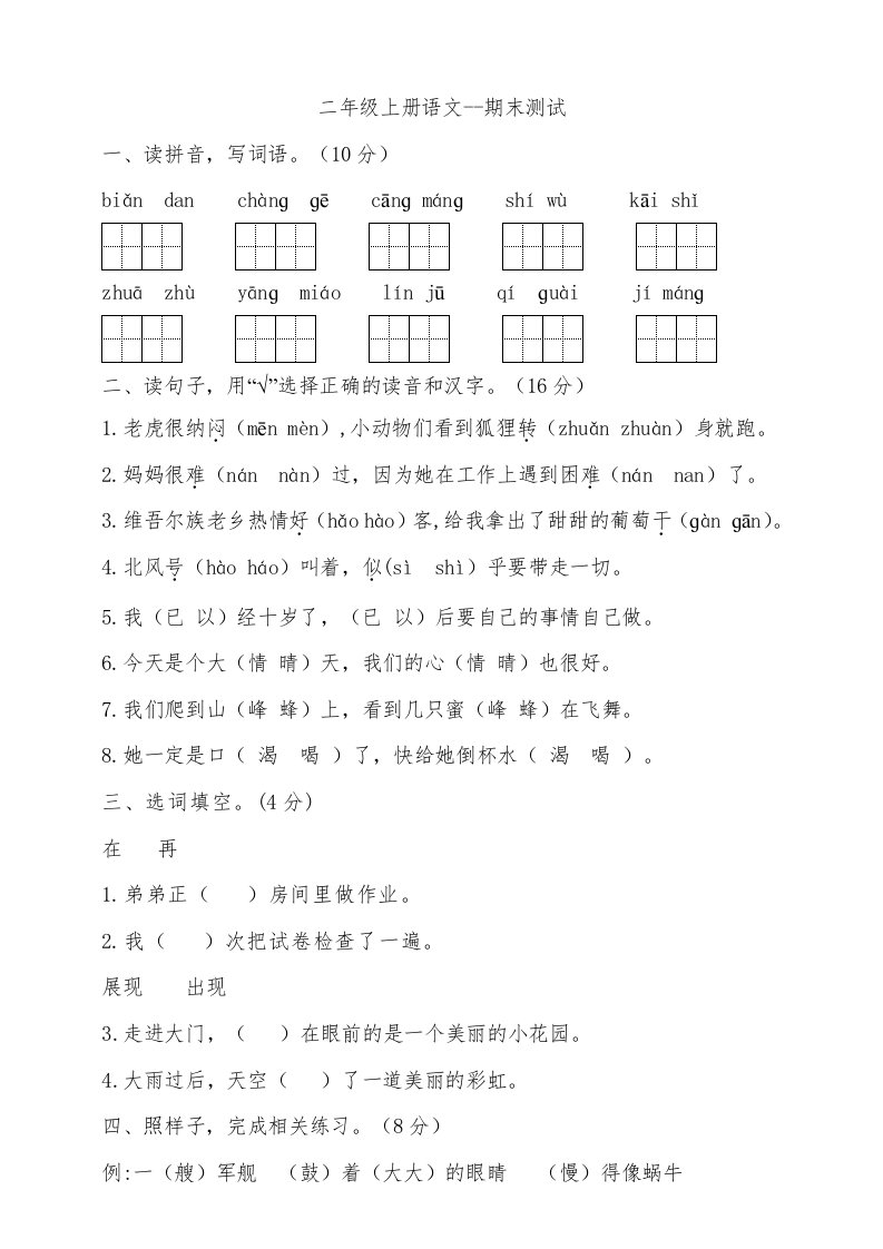 当前位置: 首页小学资源小学二年级正文 二年级语文上册(期末试题)(10)(部编)_共8页 小学二年级 2 周前 0 0 5 以上为部分内容预览,如需源文档请登录您的会员账号进行下载! 声明:本站所有文章,如无特殊说明或标注,均为本站原创发布。任何个人或组织,在未征得本站同意时,禁止复制、盗用、采集、发布本站内容到任何网站、书籍等各类媒体平台。如若本站内容侵犯了原著者的合法权益,可联系我们进行处理。 尚学资源永久会员 打赏 收藏 海报 链接