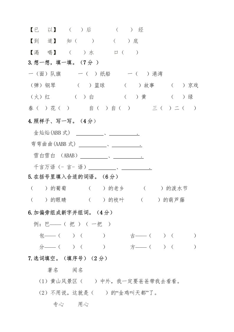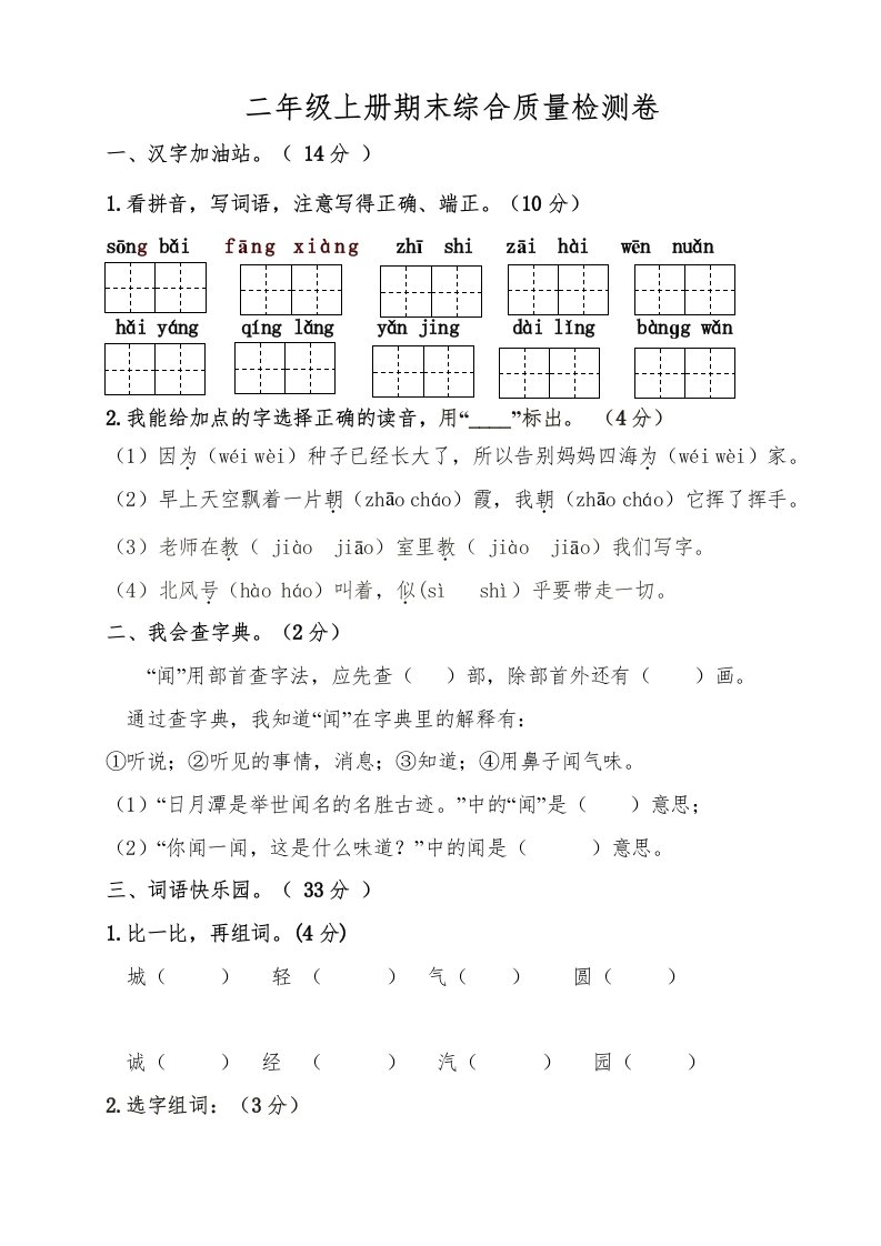 当前位置: 首页小学资源小学二年级正文 二年级语文上册(期末试题)(21)(部编)_共7页 小学二年级 2 周前 0 0 5 以上为部分内容预览,如需源文档请登录您的会员账号进行下载! 声明:本站所有文章,如无特殊说明或标注,均为本站原创发布。任何个人或组织,在未征得本站同意时,禁止复制、盗用、采集、发布本站内容到任何网站、书籍等各类媒体平台。如若本站内容侵犯了原著者的合法权益,可联系我们进行处理。 尚学资源永久会员 打赏 收藏 海报 链接