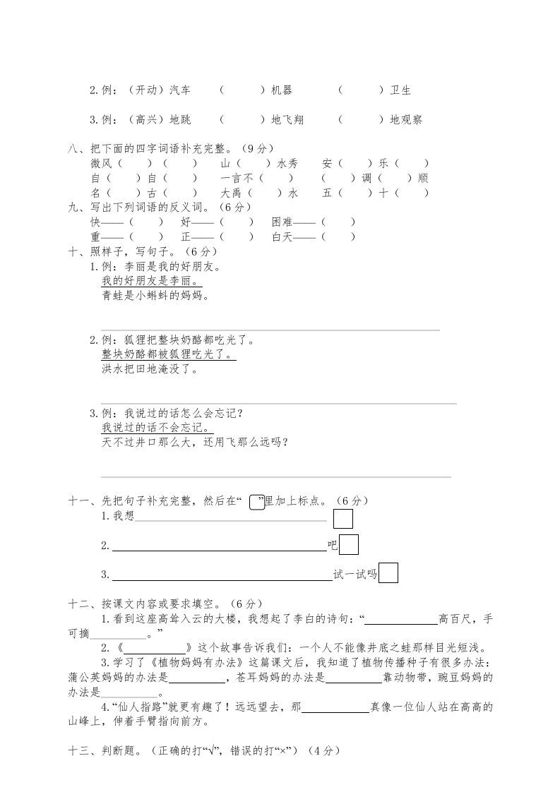 当前位置: 首页小学资源小学二年级正文 二年级语文上册苍南县(上)期末模拟卷(部编)2_共6页 小学二年级 2 周前 0 0 5 以上为部分内容预览,如需源文档请登录您的会员账号进行下载! 声明:本站所有文章,如无特殊说明或标注,均为本站原创发布。任何个人或组织,在未征得本站同意时,禁止复制、盗用、采集、发布本站内容到任何网站、书籍等各类媒体平台。如若本站内容侵犯了原著者的合法权益,可联系我们进行处理。 尚学资源永久会员 打赏 收藏 海报 链接