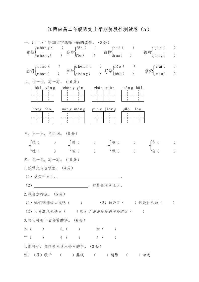 当前位置: 首页小学资源小学二年级正文 二年级语文上册江西南昌上学期阶段性测试卷(A)(部编)_共4页 小学二年级 2 周前 0 0 5 以上为部分内容预览,如需源文档请登录您的会员账号进行下载! 声明:本站所有文章,如无特殊说明或标注,均为本站原创发布。任何个人或组织,在未征得本站同意时,禁止复制、盗用、采集、发布本站内容到任何网站、书籍等各类媒体平台。如若本站内容侵犯了原著者的合法权益,可联系我们进行处理。 尚学资源永久会员 打赏 收藏 海报 链接