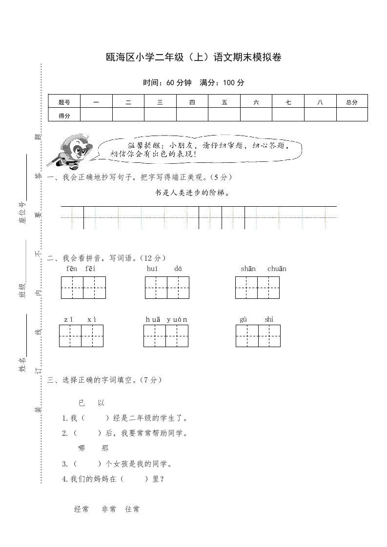 当前位置: 首页小学资源小学二年级正文 二年级语文上册瓯海区(上)期末模拟卷(部编)2_共6页 小学二年级 2 周前 0 0 5 以上为部分内容预览,如需源文档请登录您的会员账号进行下载! 声明:本站所有文章,如无特殊说明或标注,均为本站原创发布。任何个人或组织,在未征得本站同意时,禁止复制、盗用、采集、发布本站内容到任何网站、书籍等各类媒体平台。如若本站内容侵犯了原著者的合法权益,可联系我们进行处理。 尚学资源永久会员 打赏 收藏 海报 链接