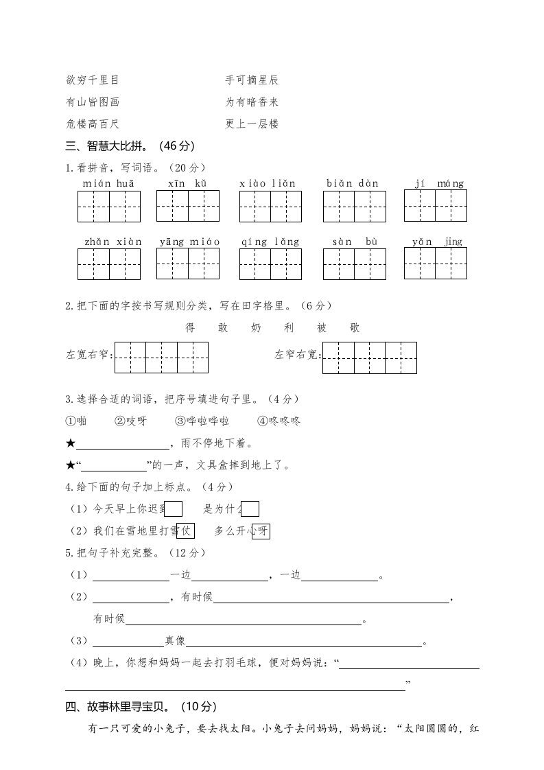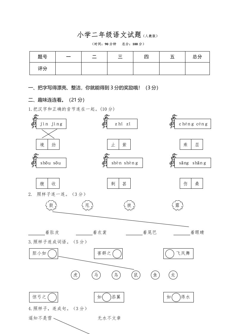 二年级语文上册期末练习(7)(部编)_共5页