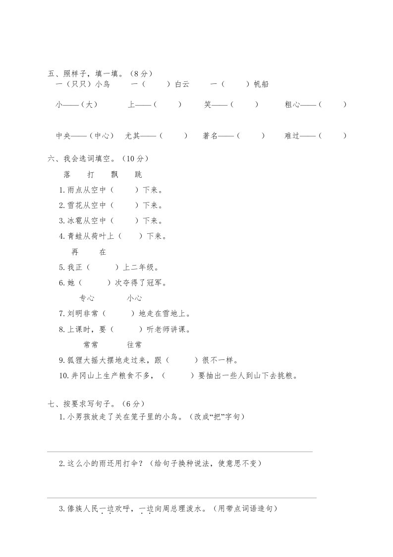 当前位置: 首页小学资源小学二年级正文 二年级语文上册期末模拟卷1(部编)2_共6页 小学二年级 2 周前 0 0 5 以上为部分内容预览,如需源文档请登录您的会员账号进行下载! 声明:本站所有文章,如无特殊说明或标注,均为本站原创发布。任何个人或组织,在未征得本站同意时,禁止复制、盗用、采集、发布本站内容到任何网站、书籍等各类媒体平台。如若本站内容侵犯了原著者的合法权益,可联系我们进行处理。 尚学资源永久会员 打赏 收藏 海报 链接