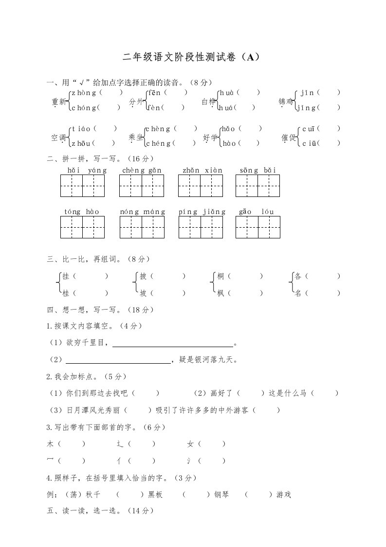 二年级语文上册期末模拟卷4(部编)2_共4页