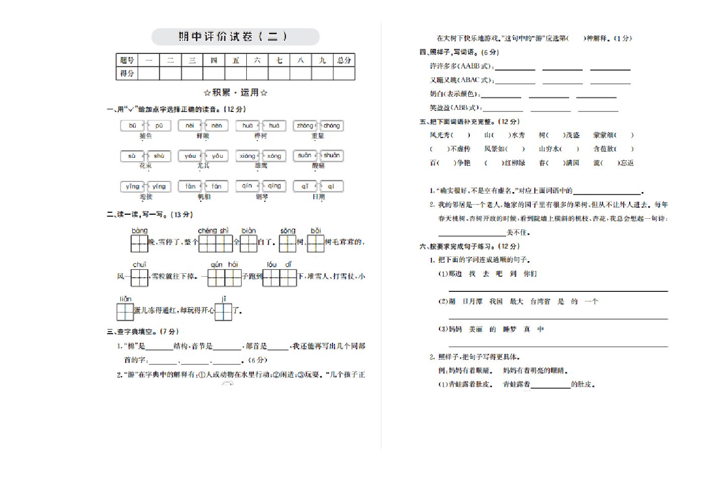 当前位置: 首页小学资源小学二年级正文 二年级语文上册期中检测卷二(部编)_共3页 小学二年级 2 周前 0 0 5 以上为部分内容预览,如需源文档请登录您的会员账号进行下载! 声明:本站所有文章,如无特殊说明或标注,均为本站原创发布。任何个人或组织,在未征得本站同意时,禁止复制、盗用、采集、发布本站内容到任何网站、书籍等各类媒体平台。如若本站内容侵犯了原著者的合法权益,可联系我们进行处理。 尚学资源永久会员 打赏 收藏 海报 链接