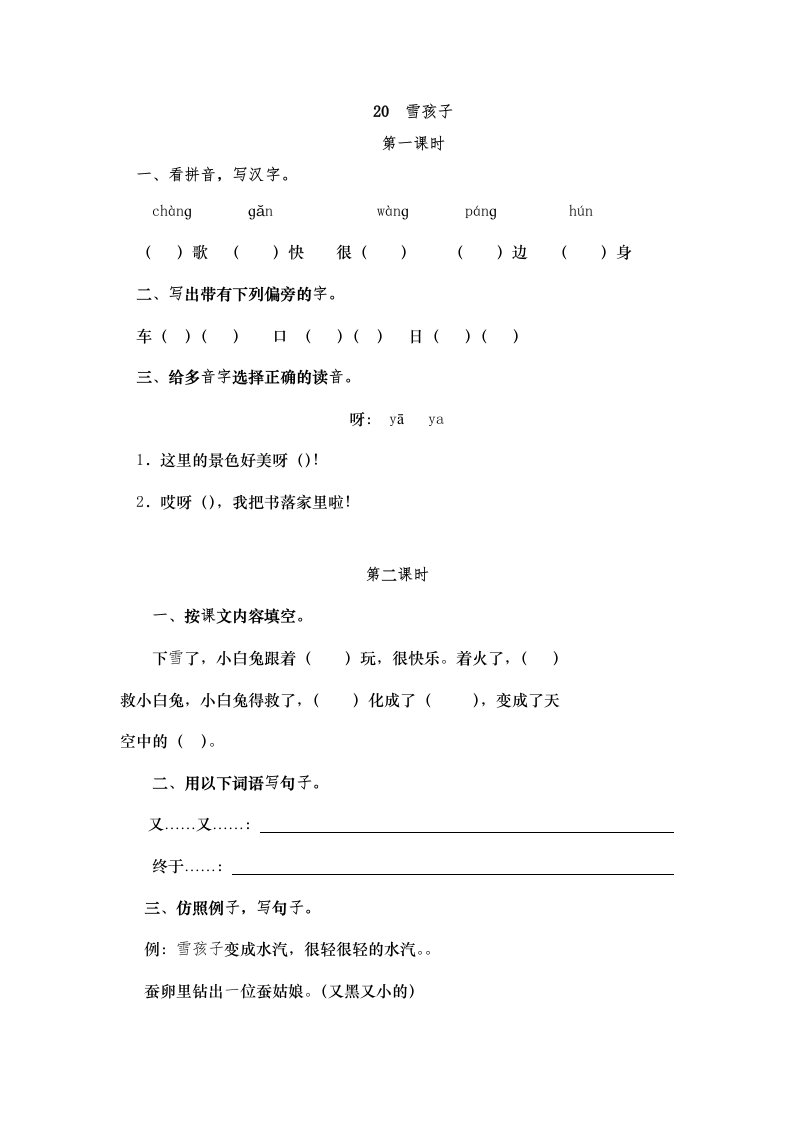 当前位置: 首页小学资源小学二年级正文 二年级语文上册20雪孩子(部编)_共2页 小学二年级 2 周前 0 0 5 以上为部分内容预览,如需源文档请登录您的会员账号进行下载! 声明:本站所有文章,如无特殊说明或标注,均为本站原创发布。任何个人或组织,在未征得本站同意时,禁止复制、盗用、采集、发布本站内容到任何网站、书籍等各类媒体平台。如若本站内容侵犯了原著者的合法权益,可联系我们进行处理。 尚学资源永久会员 打赏 收藏 海报 链接