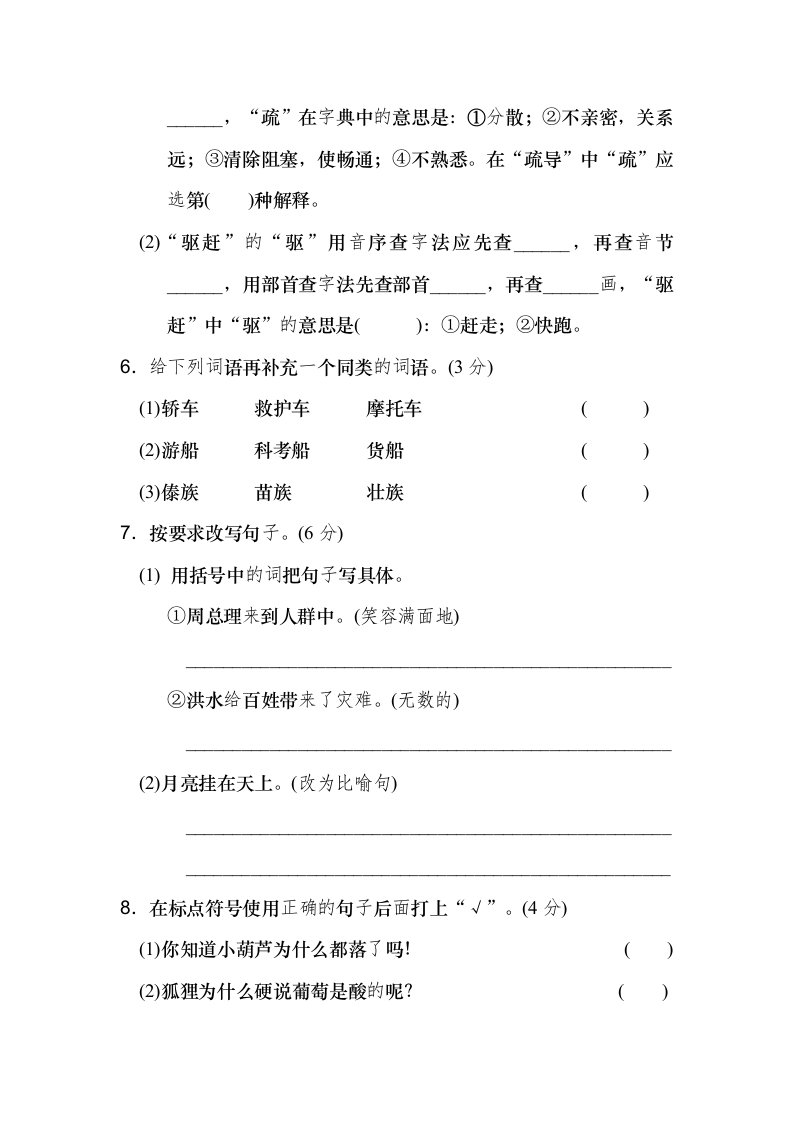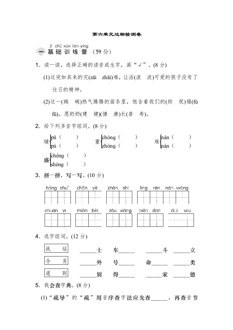 二年级语文上册达标检测卷(6)(部编)_共7页