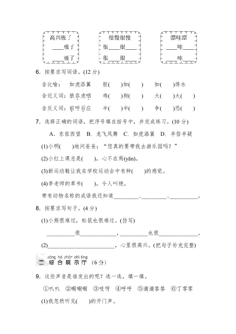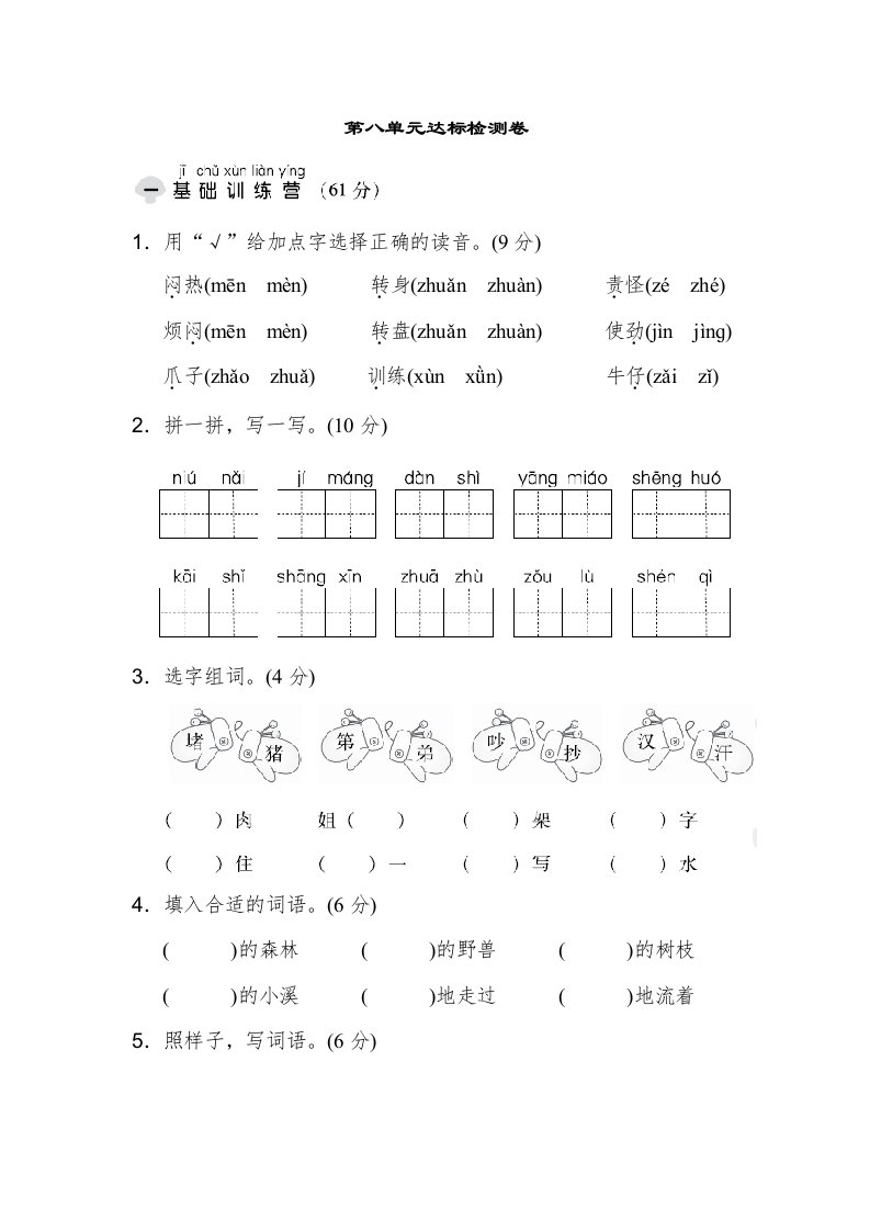 二年级语文上册达标检测卷(8)(部编)_共6页