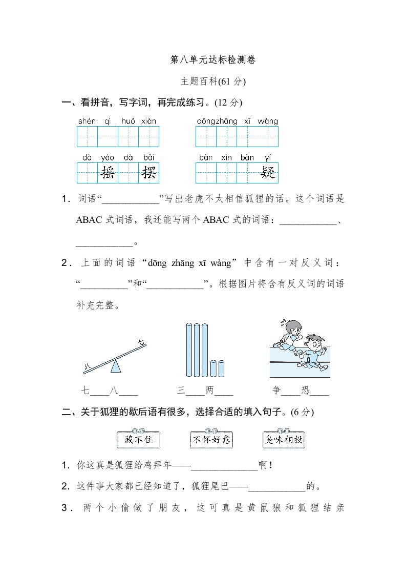当前位置: 首页小学资源小学二年级正文 二年级语文上册第8单元达标检测卷(部编)_共8页 小学二年级 2 周前 0 0 5 以上为部分内容预览,如需源文档请登录您的会员账号进行下载! 声明:本站所有文章,如无特殊说明或标注,均为本站原创发布。任何个人或组织,在未征得本站同意时,禁止复制、盗用、采集、发布本站内容到任何网站、书籍等各类媒体平台。如若本站内容侵犯了原著者的合法权益,可联系我们进行处理。 尚学资源永久会员 打赏 收藏 海报 链接