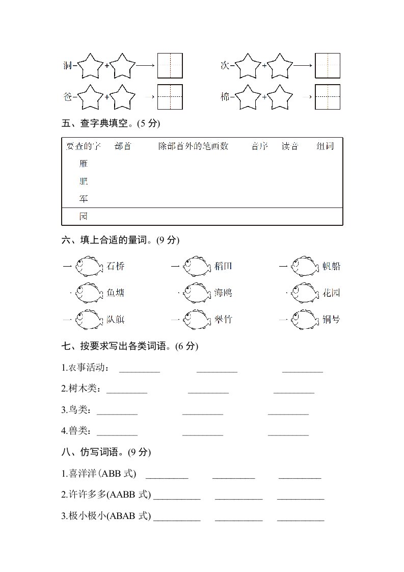 当前位置: 首页小学资源小学二年级正文 二年级语文上册第二单元测试卷(部编)_共7页 小学二年级 2 周前 0 0 5 以上为部分内容预览,如需源文档请登录您的会员账号进行下载! 声明:本站所有文章,如无特殊说明或标注,均为本站原创发布。任何个人或组织,在未征得本站同意时,禁止复制、盗用、采集、发布本站内容到任何网站、书籍等各类媒体平台。如若本站内容侵犯了原著者的合法权益,可联系我们进行处理。 尚学资源永久会员 打赏 收藏 海报 链接