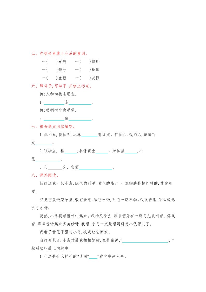 当前位置: 首页小学资源小学二年级正文 二年级语文上册第二单元提升练习(部编)_共5页 小学二年级 2 周前 0 0 5 以上为部分内容预览,如需源文档请登录您的会员账号进行下载! 声明:本站所有文章,如无特殊说明或标注,均为本站原创发布。任何个人或组织,在未征得本站同意时,禁止复制、盗用、采集、发布本站内容到任何网站、书籍等各类媒体平台。如若本站内容侵犯了原著者的合法权益,可联系我们进行处理。 尚学资源永久会员 打赏 收藏 海报 链接