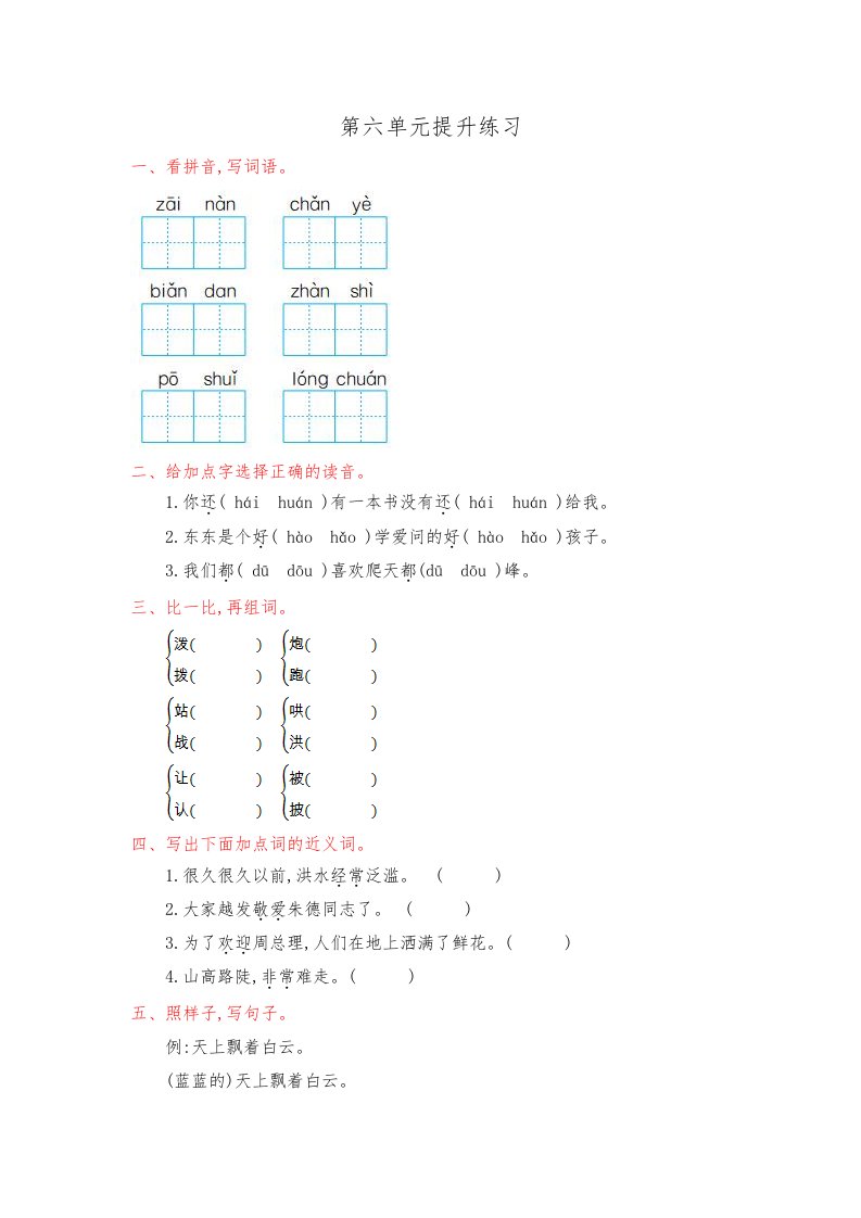 当前位置: 首页小学资源小学二年级正文 二年级语文上册第六单元提升练习(部编)_共5页 小学二年级 2 周前 0 0 5 以上为部分内容预览,如需源文档请登录您的会员账号进行下载! 声明:本站所有文章,如无特殊说明或标注,均为本站原创发布。任何个人或组织,在未征得本站同意时,禁止复制、盗用、采集、发布本站内容到任何网站、书籍等各类媒体平台。如若本站内容侵犯了原著者的合法权益,可联系我们进行处理。 尚学资源永久会员 打赏 收藏 海报 链接
