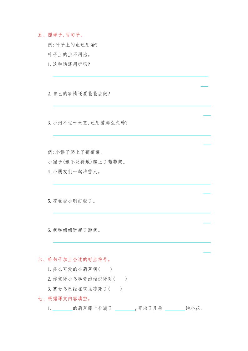 当前位置: 首页小学资源小学二年级正文 二年级语文上册第五单元提升练习(部编)_共5页 小学二年级 2 周前 0 0 5 以上为部分内容预览,如需源文档请登录您的会员账号进行下载! 声明:本站所有文章,如无特殊说明或标注,均为本站原创发布。任何个人或组织,在未征得本站同意时,禁止复制、盗用、采集、发布本站内容到任何网站、书籍等各类媒体平台。如若本站内容侵犯了原著者的合法权益,可联系我们进行处理。 尚学资源永久会员 打赏 收藏 海报 链接