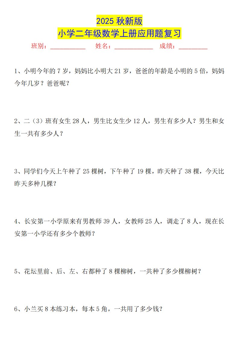 当前位置: 首页小学资源小学二年级正文 【2025秋新版】二年级数学上册常考应用题125道_共29页 小学二年级 2 周前 0 0 15 以上为部分内容预览,如需源文档请登录您的会员账号进行下载! 声明:本站所有文章,如无特殊说明或标注,均为本站原创发布。任何个人或组织,在未征得本站同意时,禁止复制、盗用、采集、发布本站内容到任何网站、书籍等各类媒体平台。如若本站内容侵犯了原著者的合法权益,可联系我们进行处理。 尚学资源永久会员 打赏 收藏 海报 链接