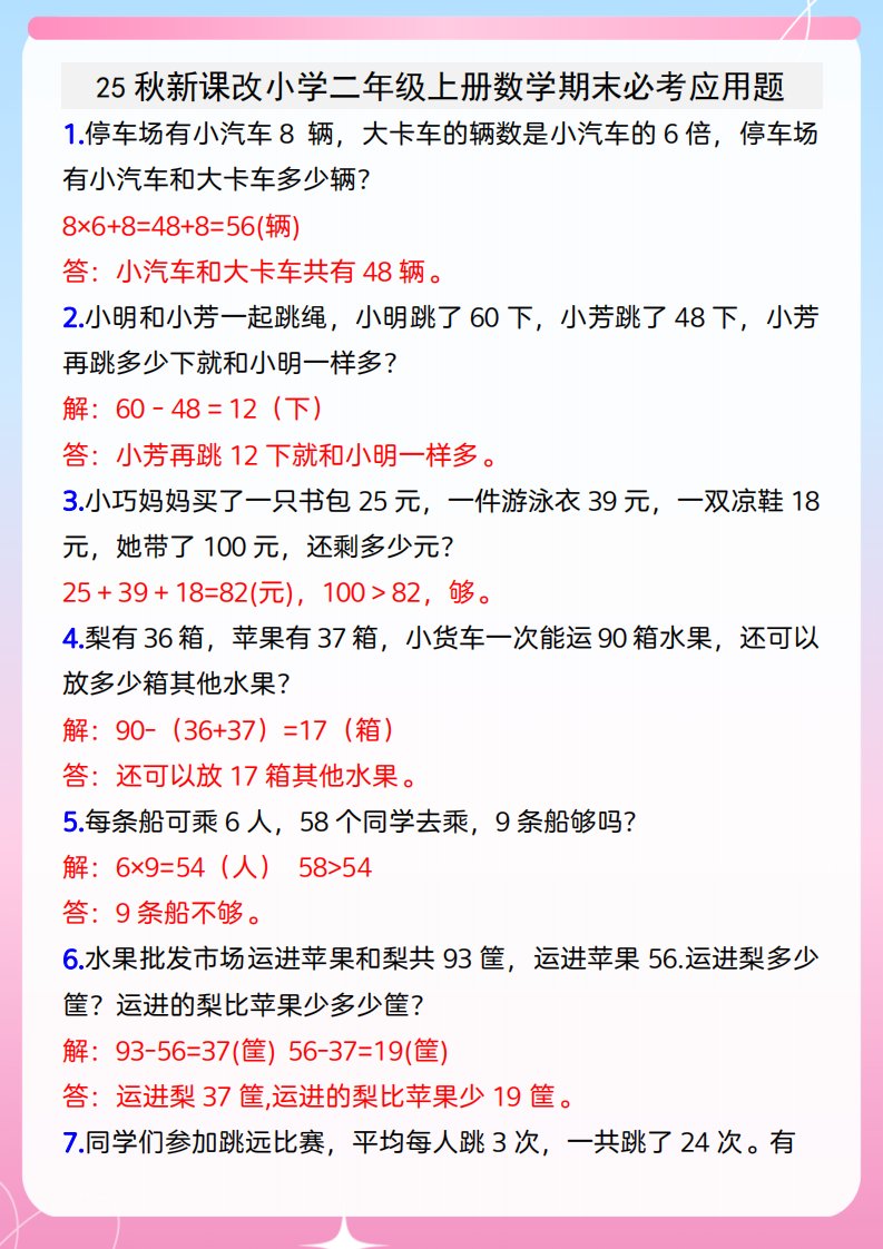 当前位置: 首页小学资源小学二年级正文 【2025秋新版】小学二年级上册数学期末必考应用题_共4页 小学二年级 2 周前 0 0 5 以上为部分内容预览,如需源文档请登录您的会员账号进行下载! 声明:本站所有文章,如无特殊说明或标注,均为本站原创发布。任何个人或组织,在未征得本站同意时,禁止复制、盗用、采集、发布本站内容到任何网站、书籍等各类媒体平台。如若本站内容侵犯了原著者的合法权益,可联系我们进行处理。 尚学资源永久会员 打赏 收藏 海报 链接