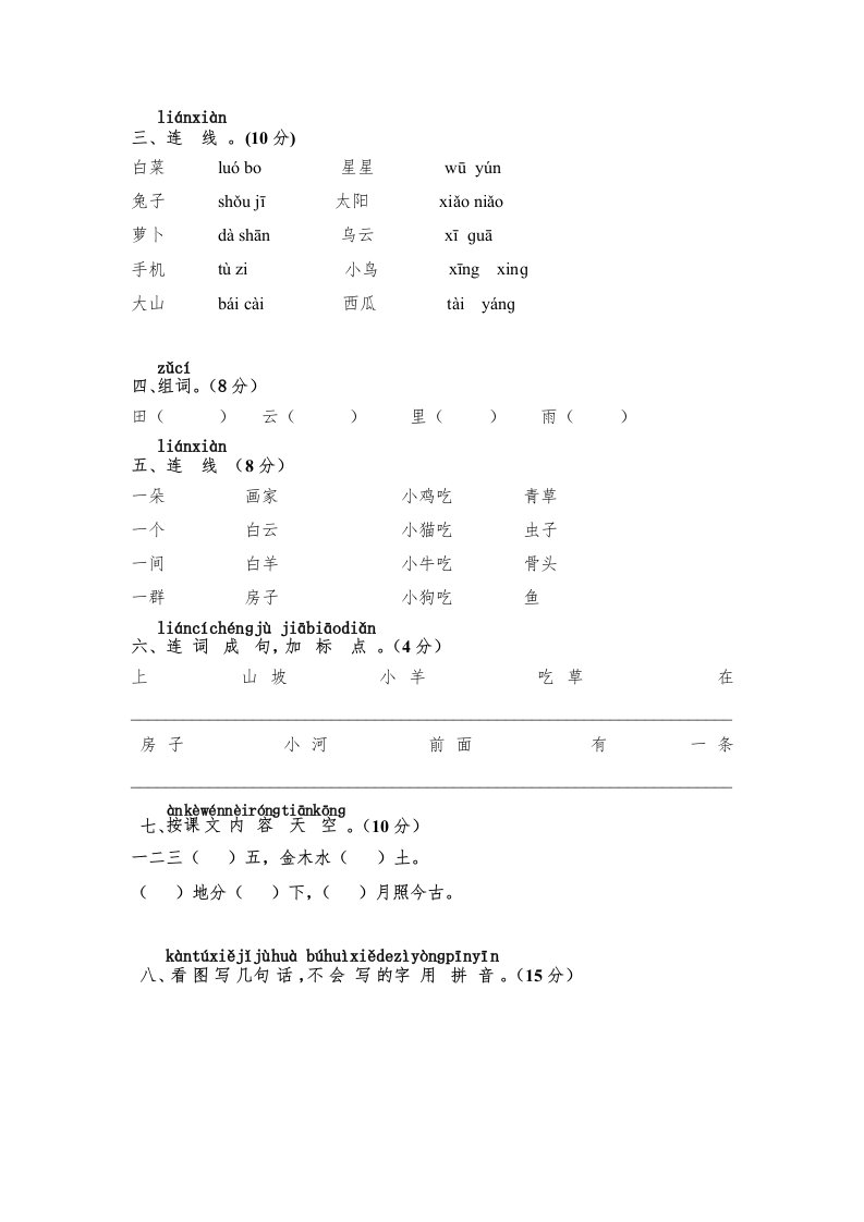 当前位置: 首页小学资源小学一年级正文 一年级语文上册期中测试卷-部编(9)(部编版)_共5页 小学一年级 2 周前 0 0 5 以上为部分内容预览,如需源文档请登录您的会员账号进行下载! 声明:本站所有文章,如无特殊说明或标注,均为本站原创发布。任何个人或组织,在未征得本站同意时,禁止复制、盗用、采集、发布本站内容到任何网站、书籍等各类媒体平台。如若本站内容侵犯了原著者的合法权益,可联系我们进行处理。 尚学资源永久会员 打赏 收藏 海报 链接
