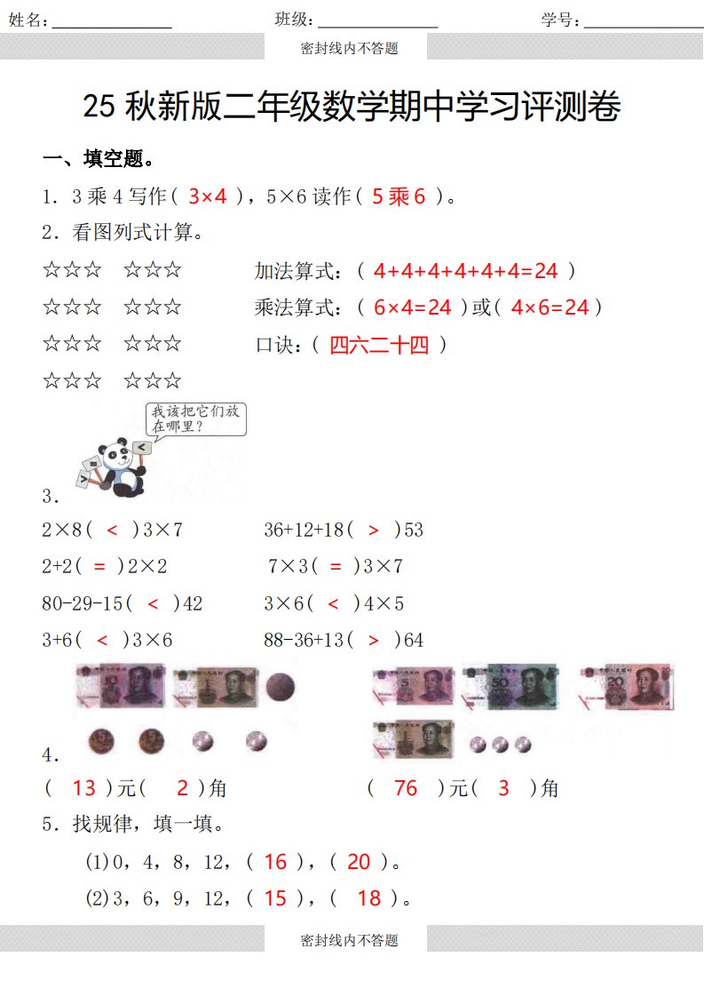 当前位置: 首页小学资源小学二年级正文 【2025秋新版】第一学期二年级数学期中学习评测卷-二上数学_共5页 小学二年级 2 周前 0 0 5 以上为部分内容预览,如需源文档请登录您的会员账号进行下载! 声明:本站所有文章,如无特殊说明或标注,均为本站原创发布。任何个人或组织,在未征得本站同意时,禁止复制、盗用、采集、发布本站内容到任何网站、书籍等各类媒体平台。如若本站内容侵犯了原著者的合法权益,可联系我们进行处理。 尚学资源永久会员 打赏 收藏 海报 链接