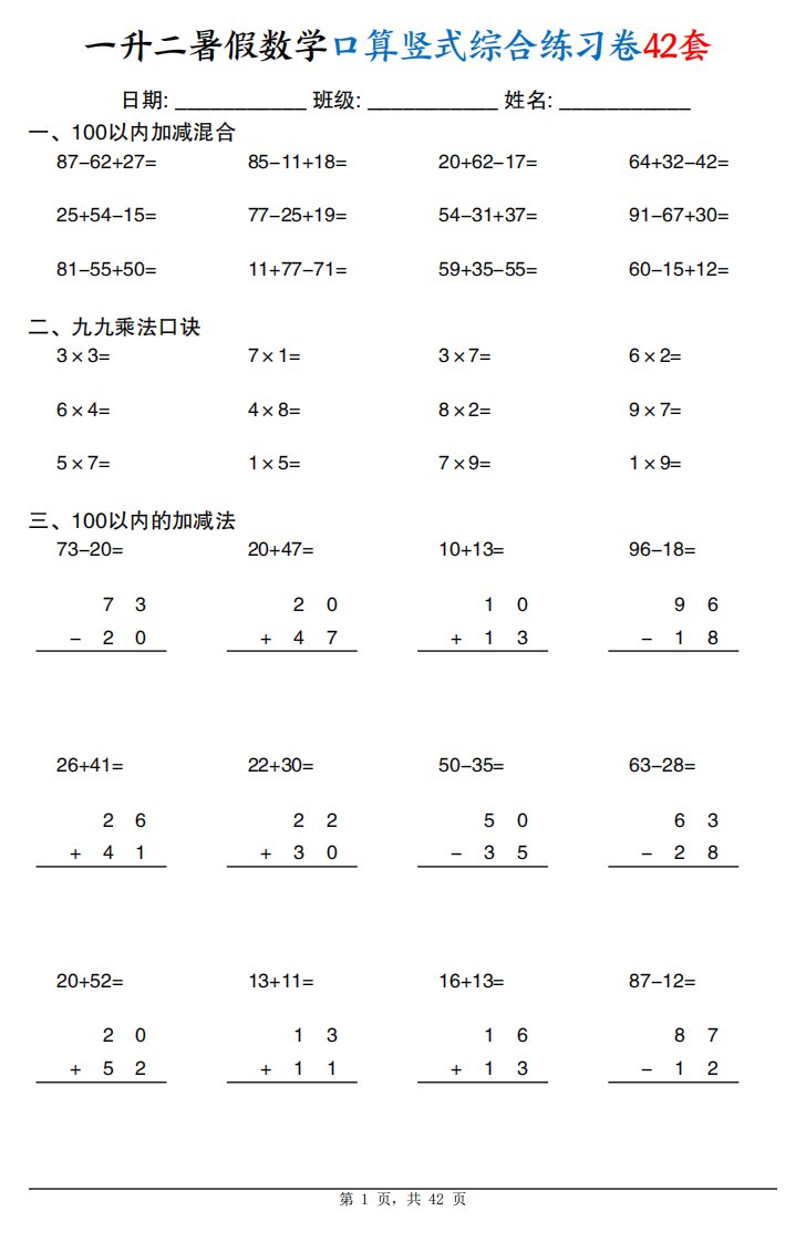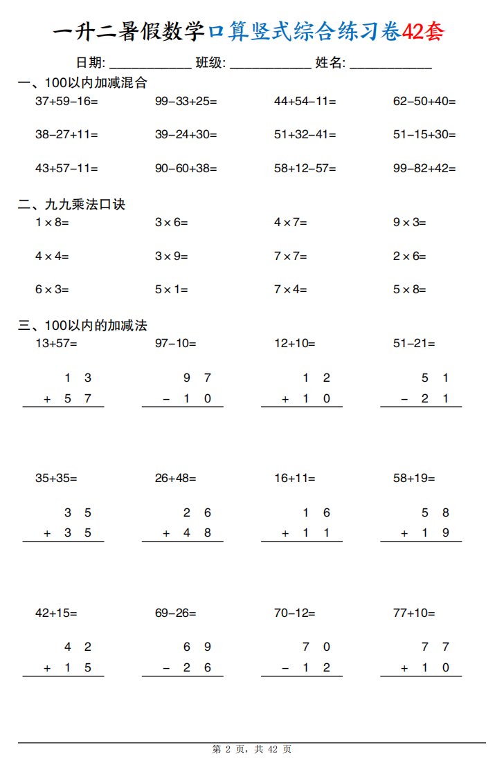 当前位置: 首页小学资源小学二年级正文 一升二暑假数学口算竖式综合练习卷42套42页-二上数学_共42页 小学二年级 2 周前 0 0 15 以上为部分内容预览,如需源文档请登录您的会员账号进行下载! 声明:本站所有文章,如无特殊说明或标注,均为本站原创发布。任何个人或组织,在未征得本站同意时,禁止复制、盗用、采集、发布本站内容到任何网站、书籍等各类媒体平台。如若本站内容侵犯了原著者的合法权益,可联系我们进行处理。 尚学资源永久会员 打赏 收藏 海报 链接