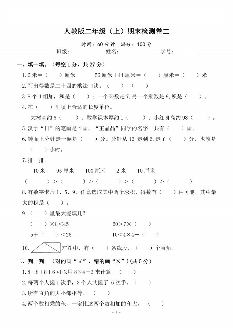 当前位置: 首页小学资源小学二年级正文 二上人教版数学期末模拟卷.4_共5页 小学二年级 2 周前 0 0 5 以上为部分内容预览,如需源文档请登录您的会员账号进行下载! 声明:本站所有文章,如无特殊说明或标注,均为本站原创发布。任何个人或组织,在未征得本站同意时,禁止复制、盗用、采集、发布本站内容到任何网站、书籍等各类媒体平台。如若本站内容侵犯了原著者的合法权益,可联系我们进行处理。 尚学资源永久会员 打赏 收藏 海报 链接