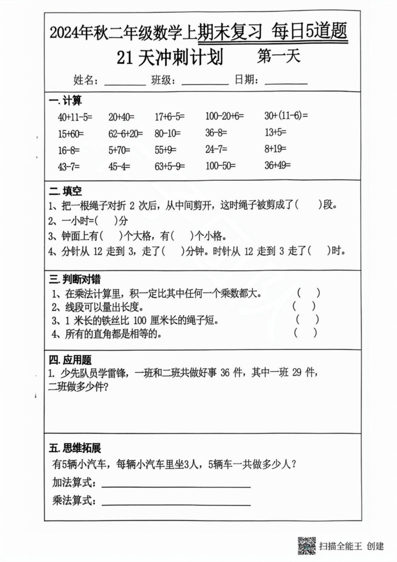 当前位置: 首页小学资源小学二年级正文 2024秋二年级数学上册期末复习每日5题(21天期末冲刺计划)_共25页 小学二年级 2 周前 0 0 15 以上为部分内容预览,如需源文档请登录您的会员账号进行下载! 声明:本站所有文章,如无特殊说明或标注,均为本站原创发布。任何个人或组织,在未征得本站同意时,禁止复制、盗用、采集、发布本站内容到任何网站、书籍等各类媒体平台。如若本站内容侵犯了原著者的合法权益,可联系我们进行处理。 尚学资源永久会员 打赏 收藏 海报 链接